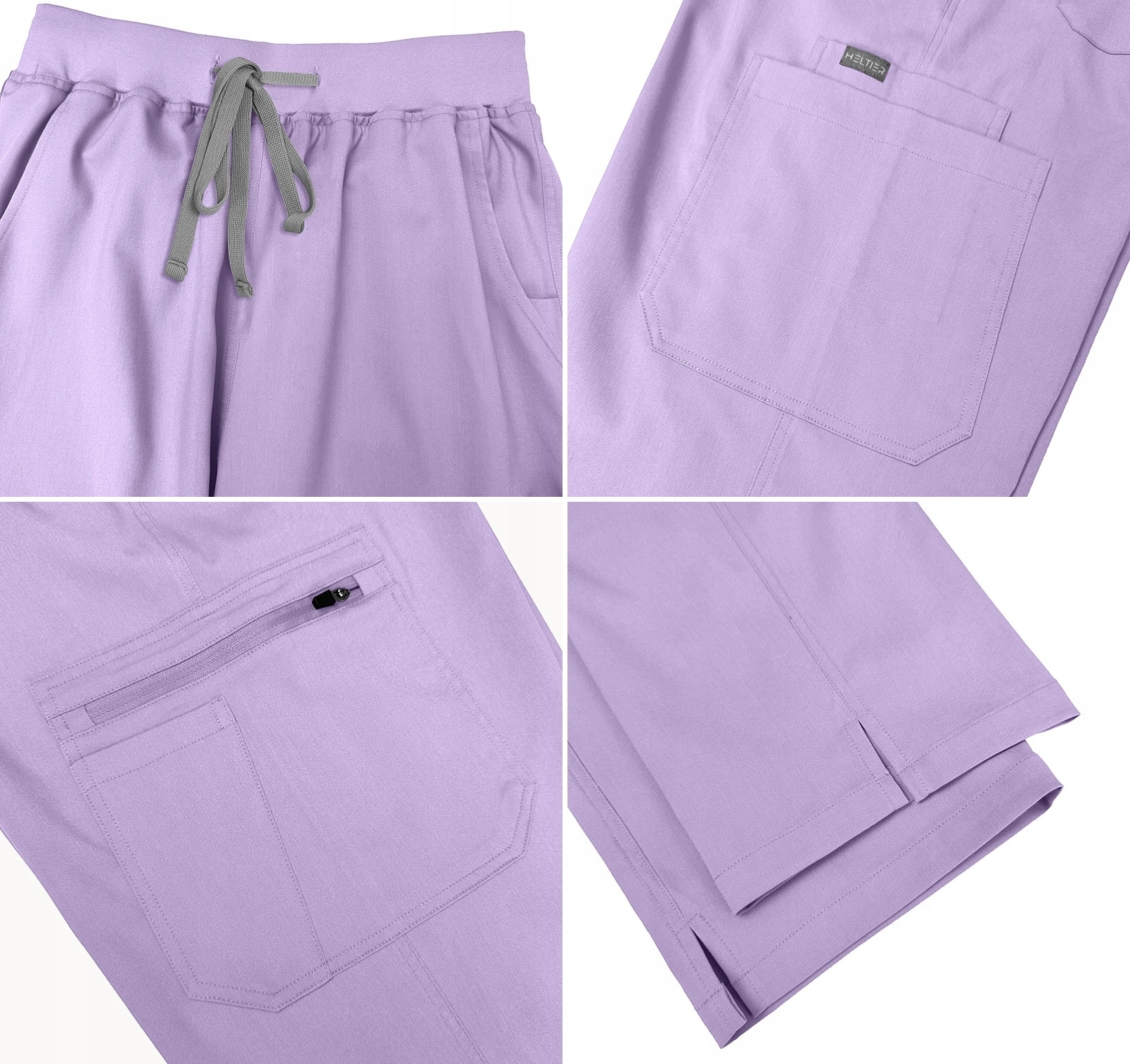 Медицинские брюки имеют среднюю талию и регулируются кулиской на талии.