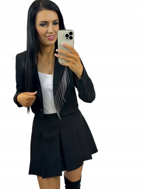 Женский пиджак Модный короткий элегантный пиджак с бахромой Черный пояс на пуговице в цвет пиджака