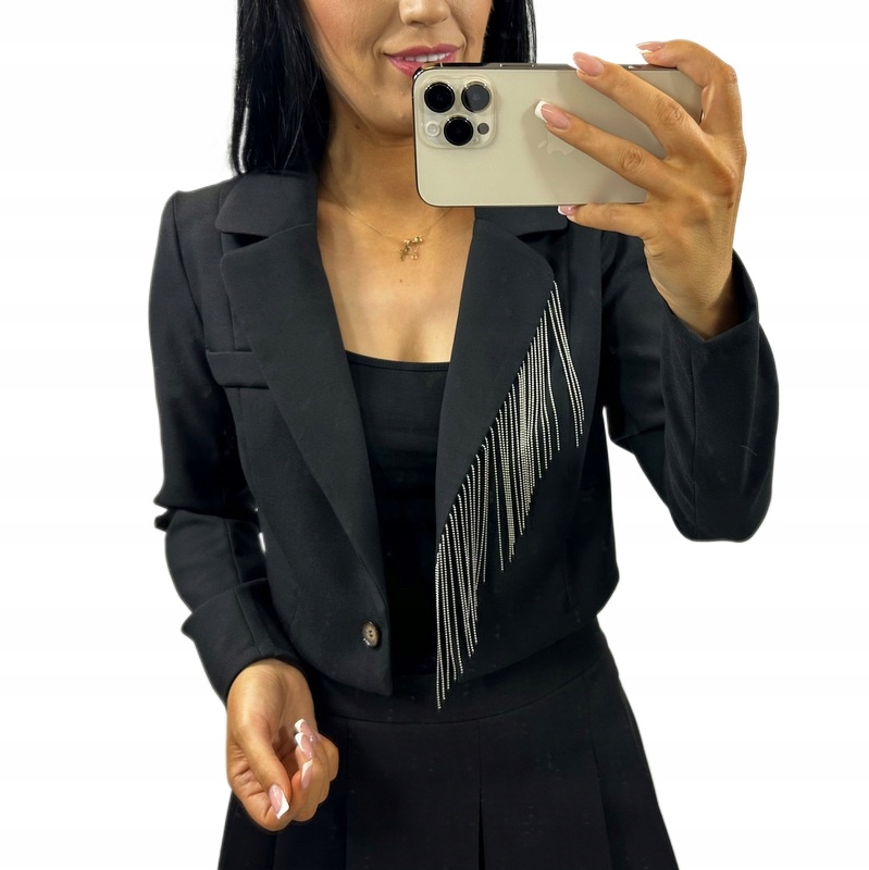 Жіночий модний короткий блейзер, елегантний з бахромою, чорний XL