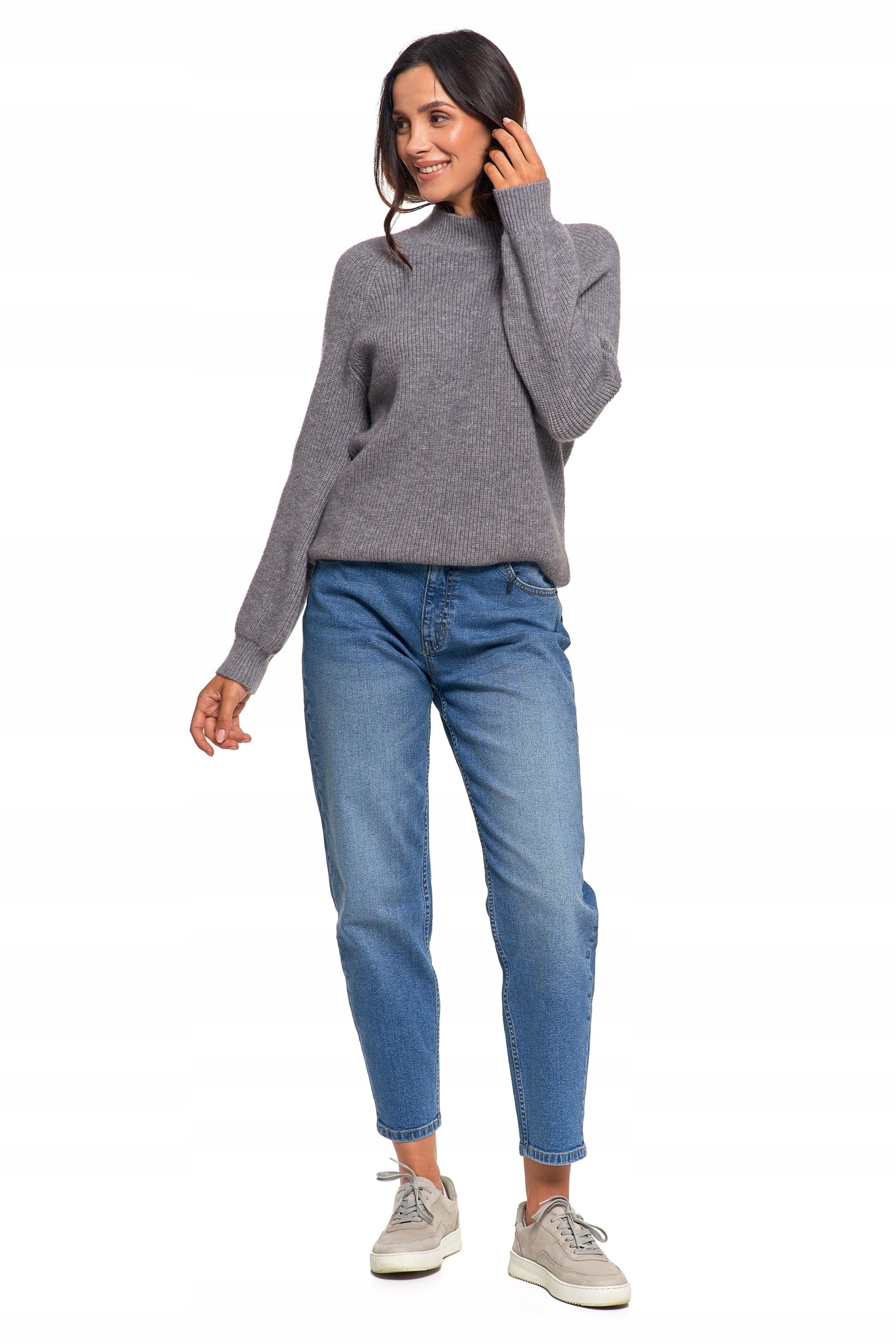 ЖЕНСКИЙ МЯГКИЙ ТРИКОТАЖНЫЙ ДЖЕМПЕР СТИЛЬНЫЙ СВОБОДНЫЙ MORAJ С ВОРОТНИКОМ-СТОЙКОЙ СЕРЫЙ МЕЛАНЖ S