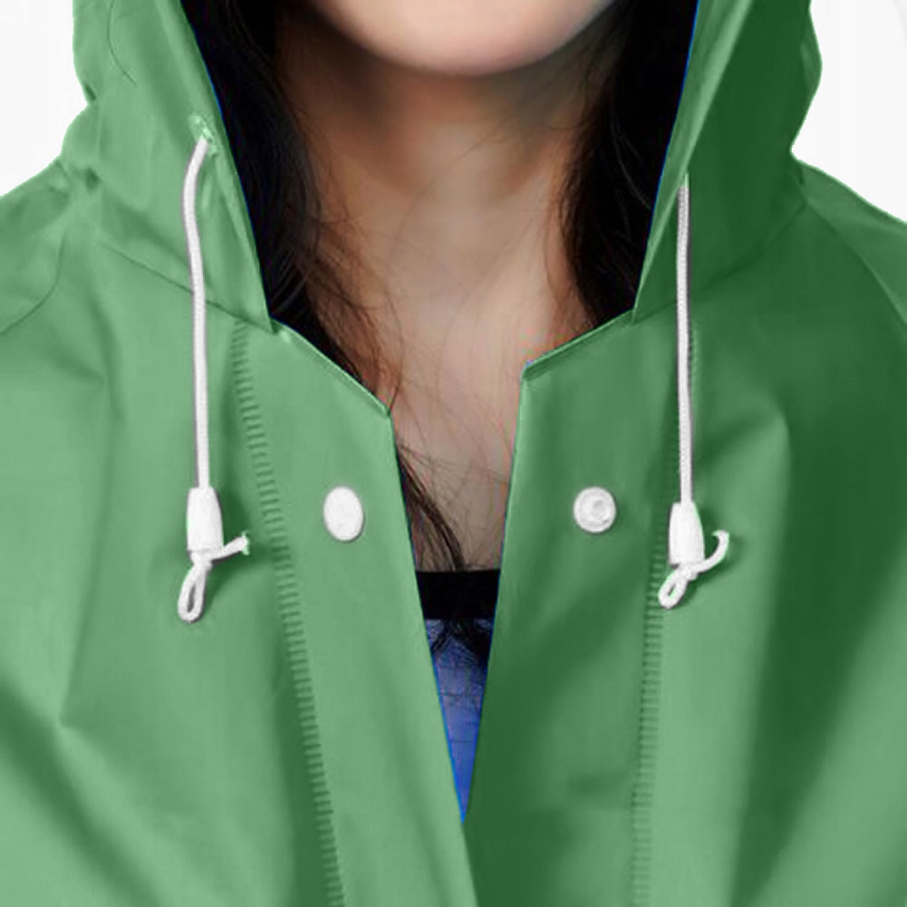 Отличный плащ с капюшоном. Идеальная защита от дождя . Просторный капюшон с обертками перед дождем.