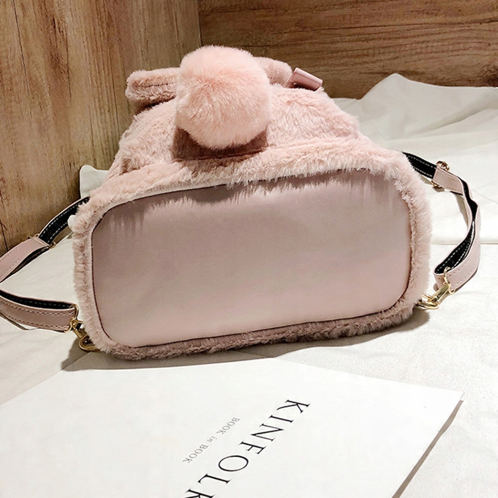Женский рюкзак с кроликом, плюшевый мини-пушистый рюкзак с кроличьими ушками, школьная сумка с кроликом, повседневный рюкзак для девочек