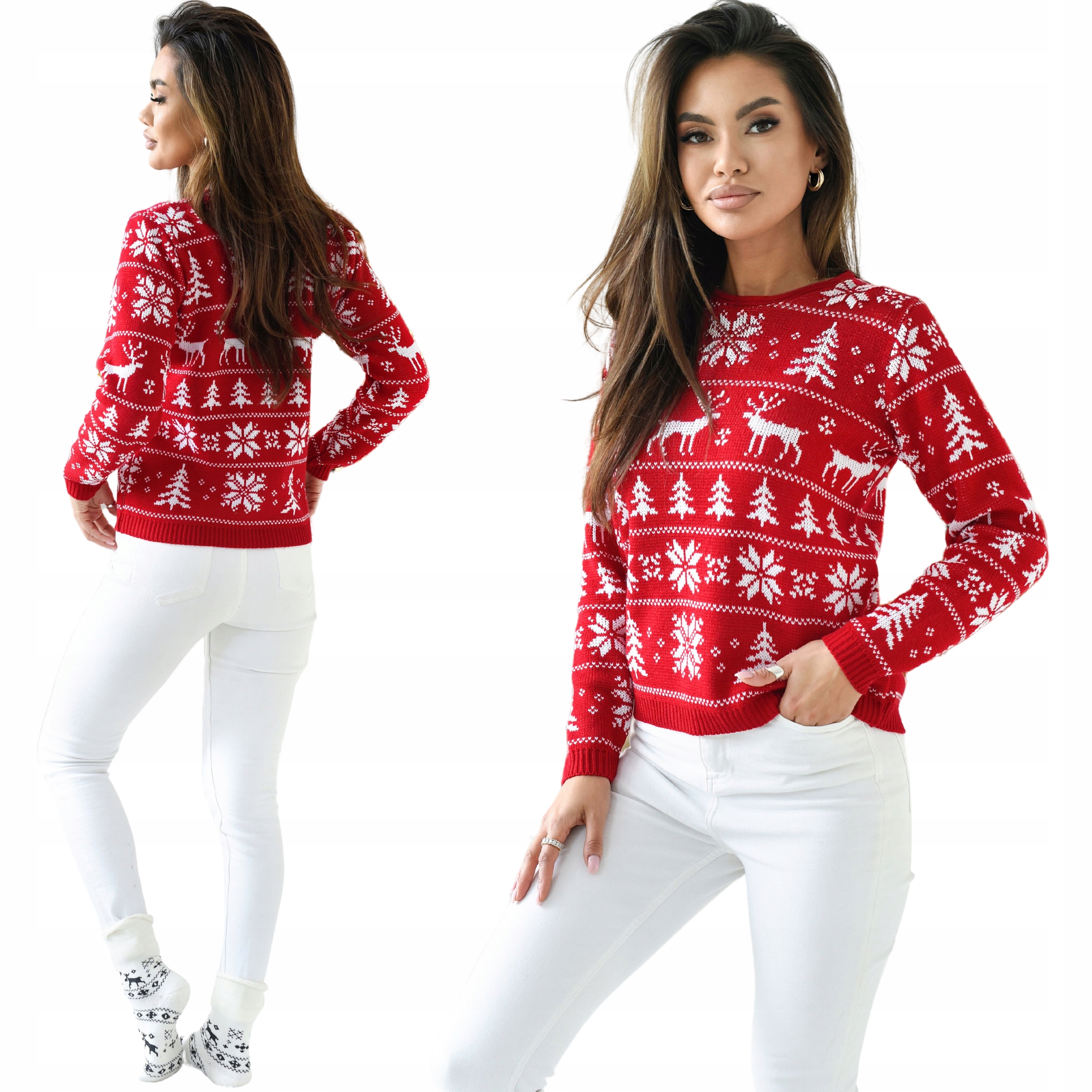 ЖІНОЧИЙ РІЗДВЯНИЙ ДЖЕМПЕР ОЛЕНЬ, ЗІРОЧКИ, НОРВЕЖЬКИЙ ВЗІЗУРОК, ЧЕРВОНИЙ, РОЗМІР S