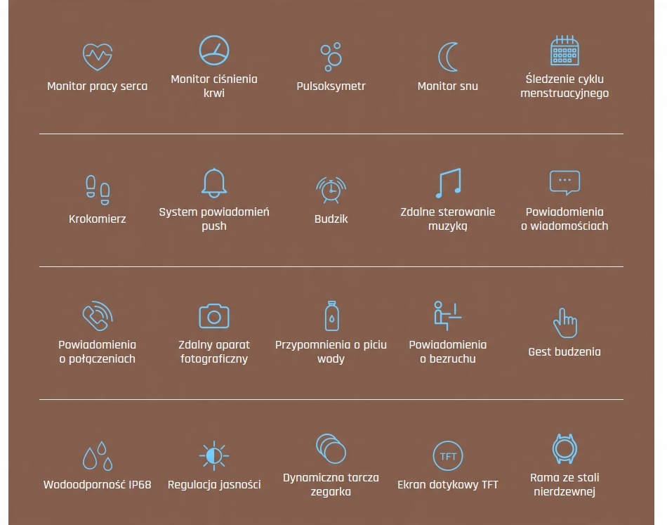 FW42 Silver также имеет множество других полезных функций, таких как шагомер, счетчик калорий и напоминание о сидячем положении.Здоровье на кончиках пальцев