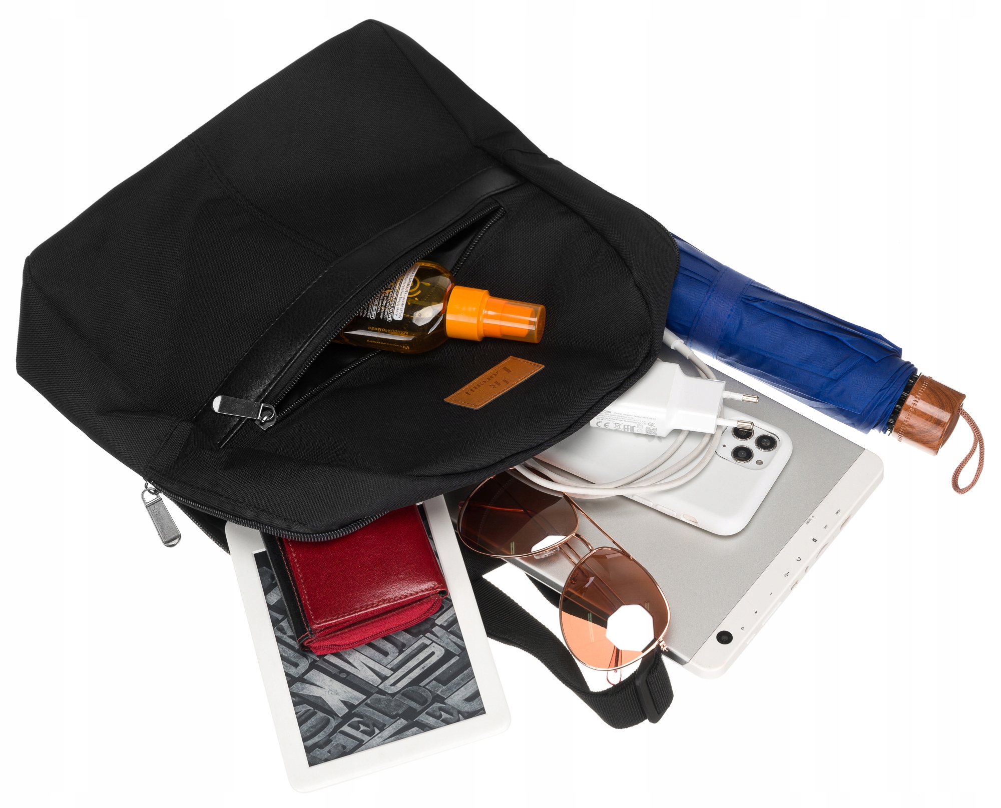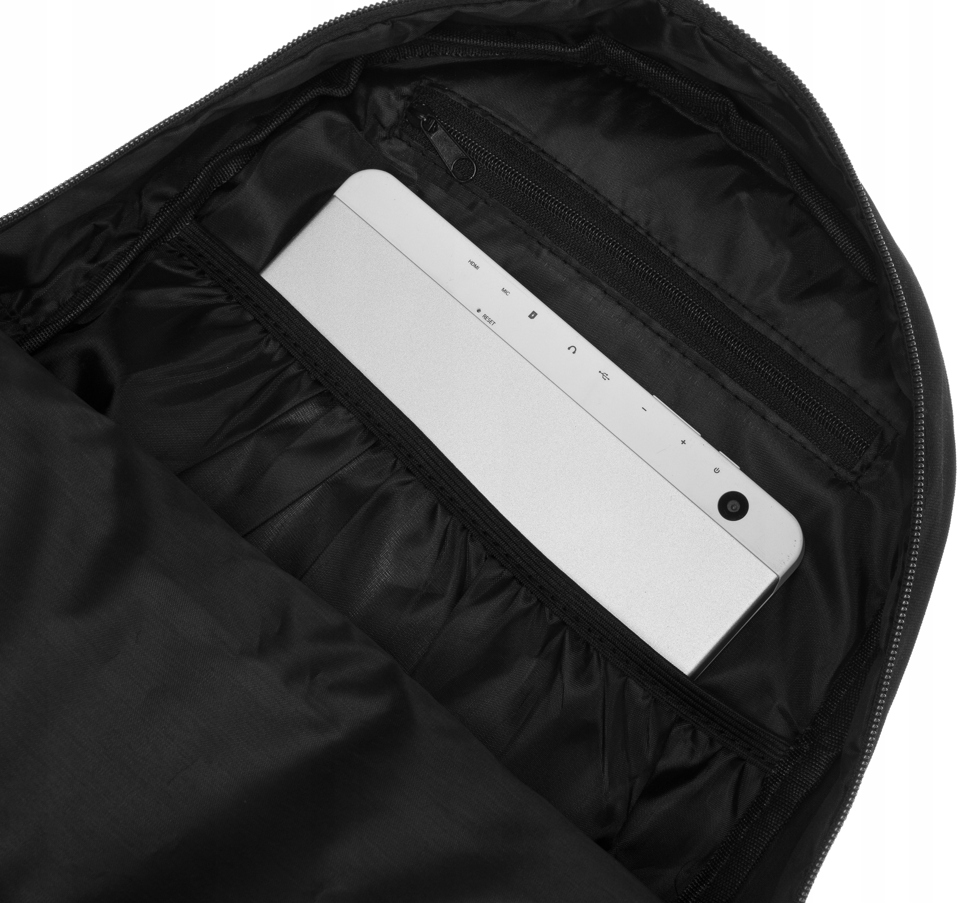 Представленная модель оснащена 1️⃣ отделением и 2️⃣ дополнительными карманами. Один из карманов закрывается на молнию, другой открыт; это идеальное место для небольшого планшета (размеры отделения: 20x22 [см]). Несмотря на небольшой размер, в него легко поместится кошелек, телефон, ключи или немного базовой косметики.