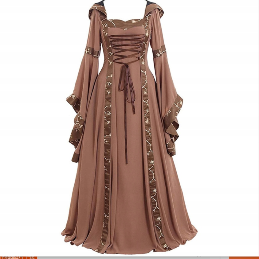 Классическое воспроизведение с полным обаянием: квадратный вырез, кружево, расширенные рукава и широкая юбка. Классические средневековые элементы были объединены гениально, а капюшон добавляет таинственную атмосферу. Ношение его, вы почувствуете, как будто вы путешествовали во времени и пространстве, а элегантность и романтизм средневековья будут полностью видны. Это отличный выбор для комических выставок, тематических событий и других случаев.