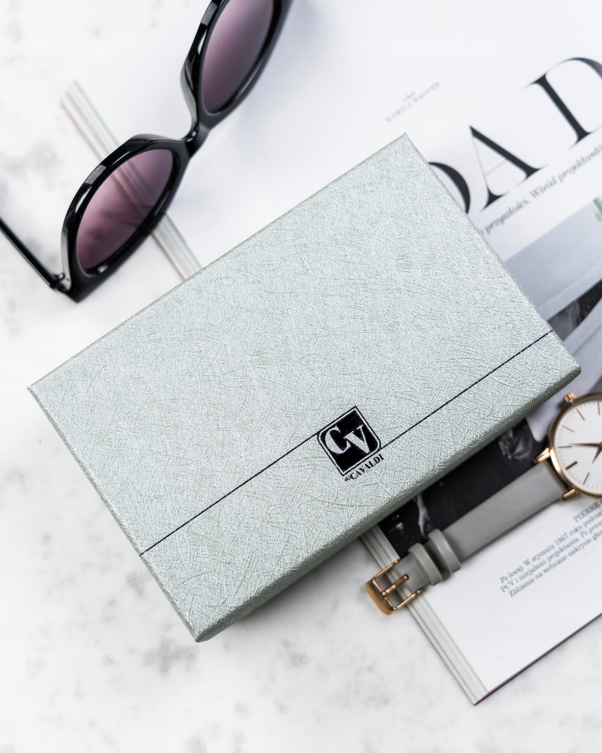 Кошелек упакован в жесткую коробку серебристого цвета с логотипом бренда. Такая подарочная коробка сэкономит вам время и деньги.