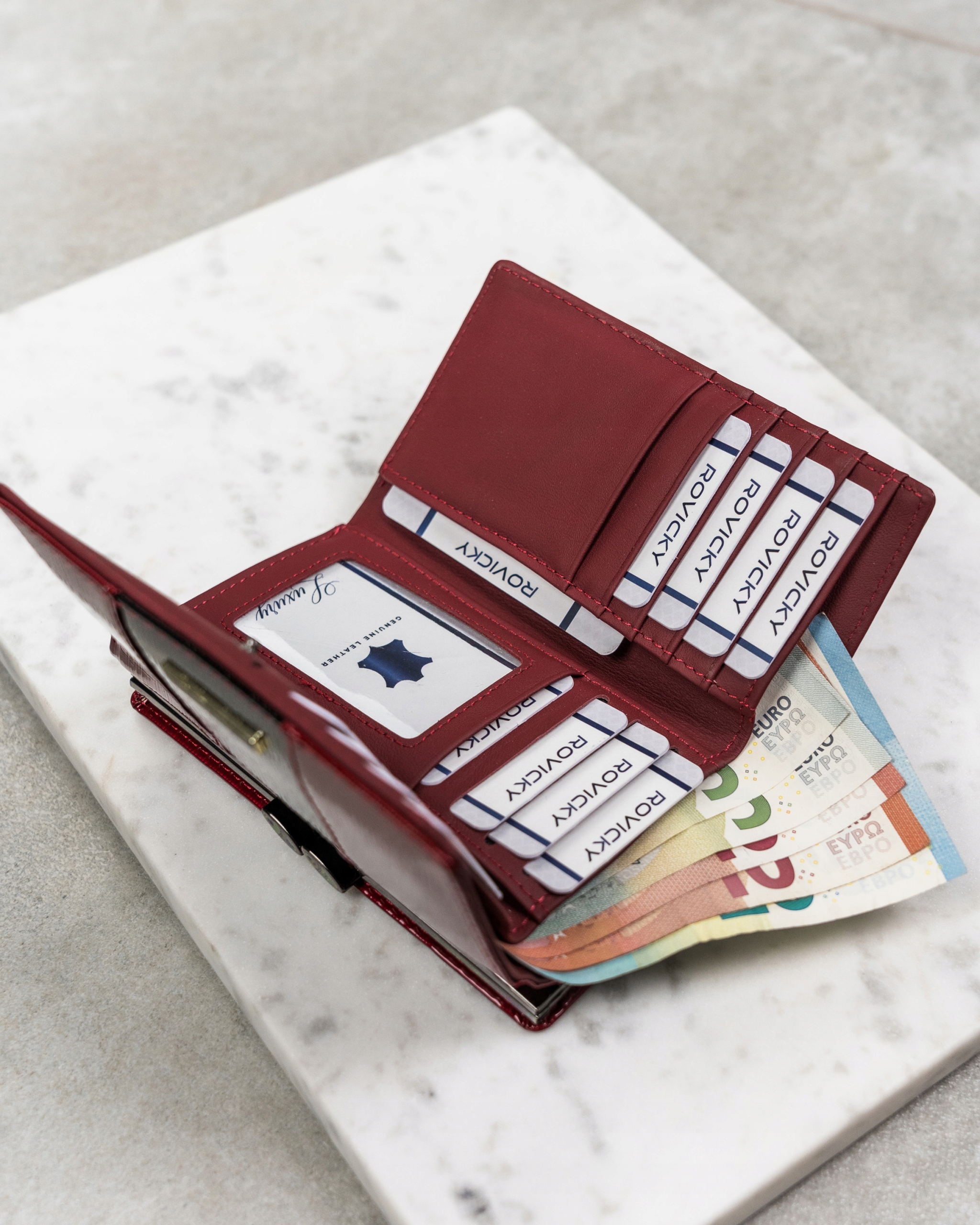 Отделения для карточек и документов также защищены подкладкой. Это позволяет избежать ссадин на коже при бесчисленном вставлении и извлечении карт.
