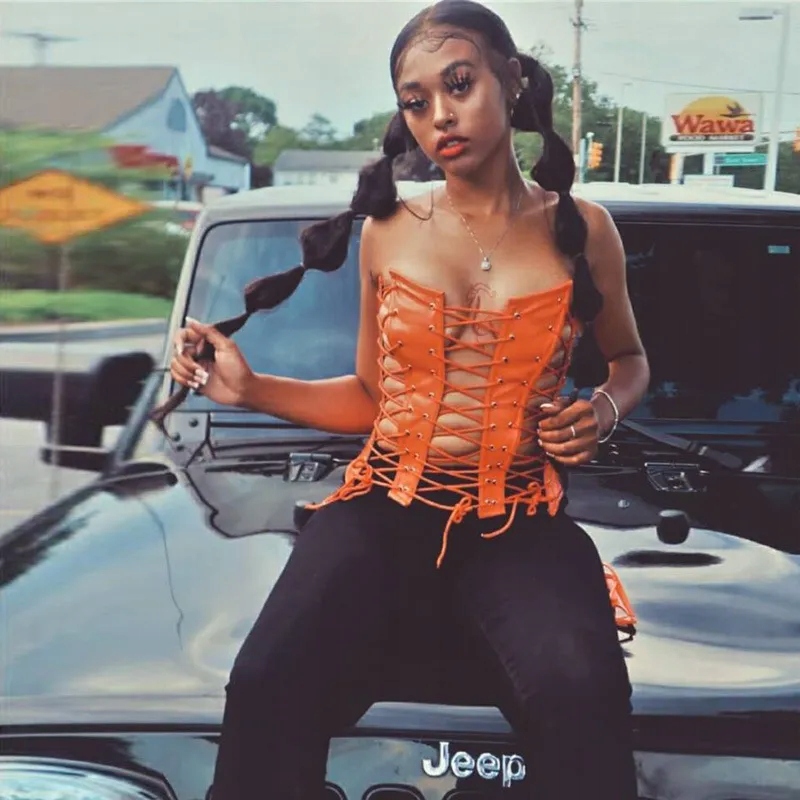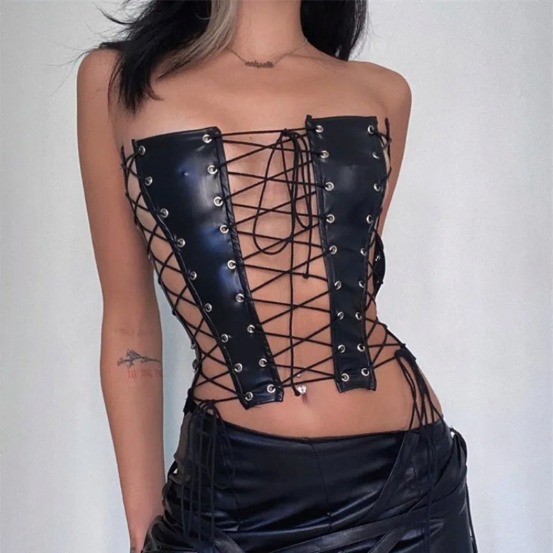 жіночий шкіряний топ еротична вечірня блузка корсет чорний помаранчевий розмір m
