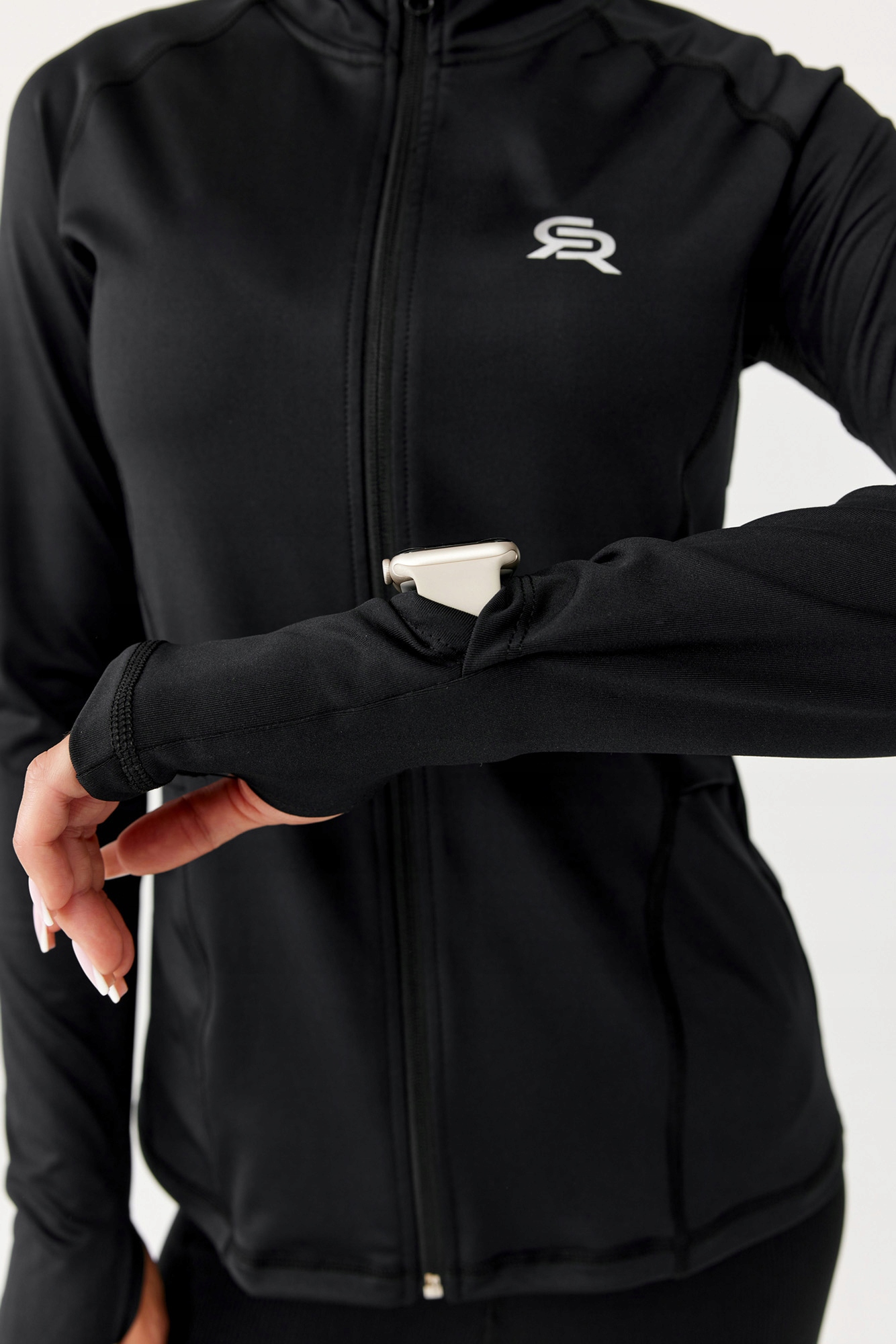 Толстовка имеет удобные передние карманы с петлями безопасности и молнию по всей длине.