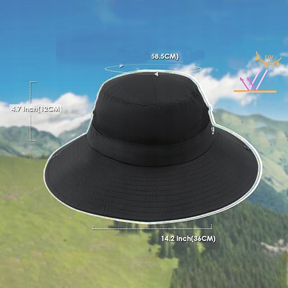 Защита от ультрафиолета, сетчатый козырек идеально подходит для путешествий, рыбалки, пляжа, садоводства, 56–58 см (холодный черный)