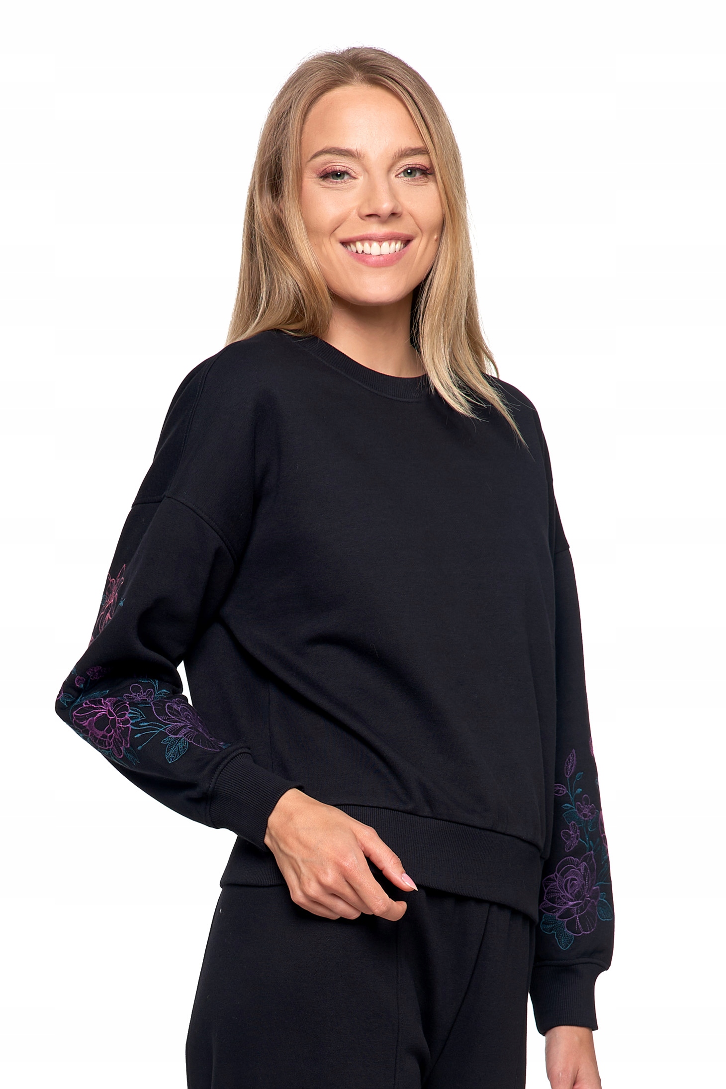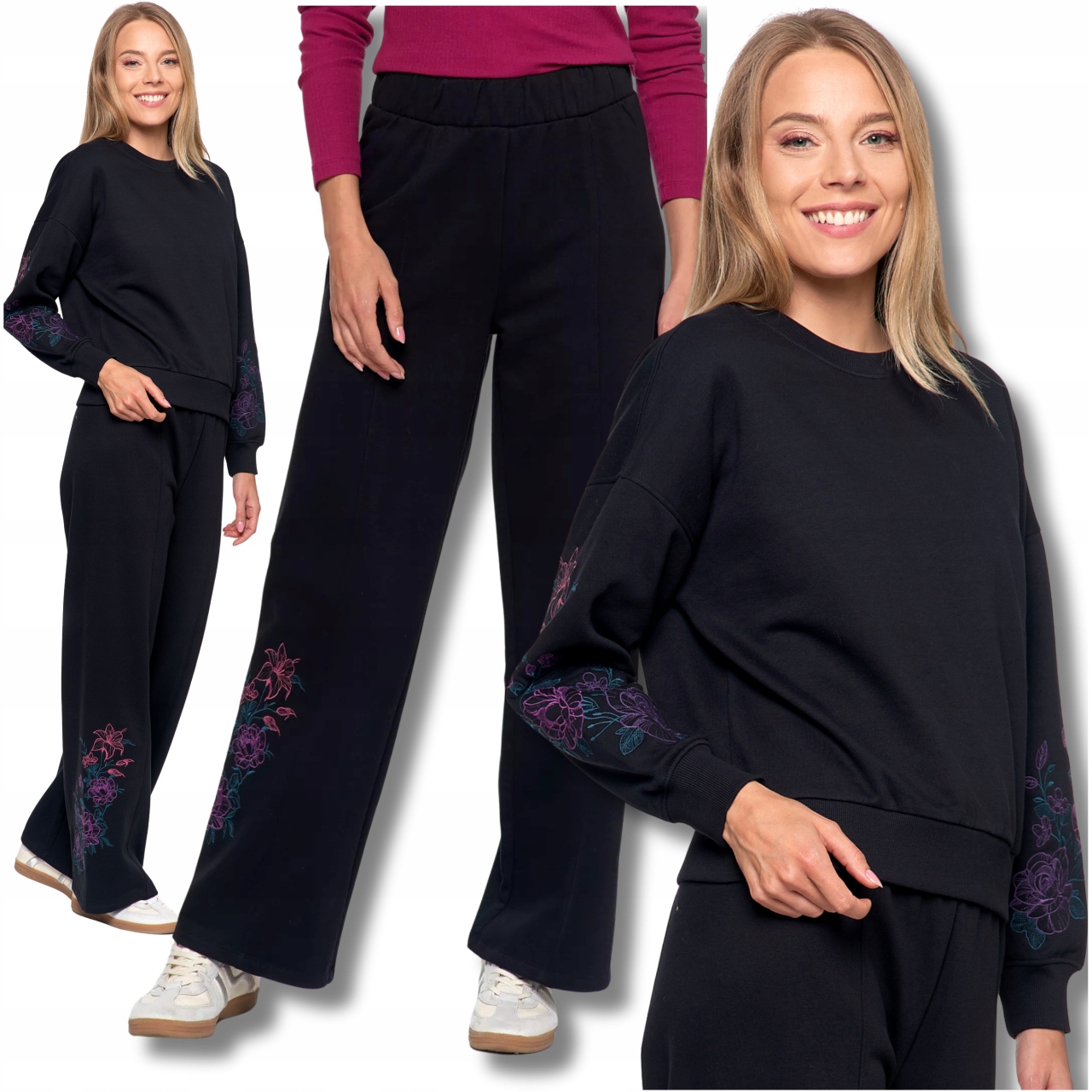ЖЕНСКИЙ СПОРТИВНЫЙ КОСТЮМ УТЕПЛЕННЫЕ БРЮКИ С ВЫШИВКОЙ СВИТШОТ С ВЫШИВКОЙ НА РУКАВАХ MORAJ XXL