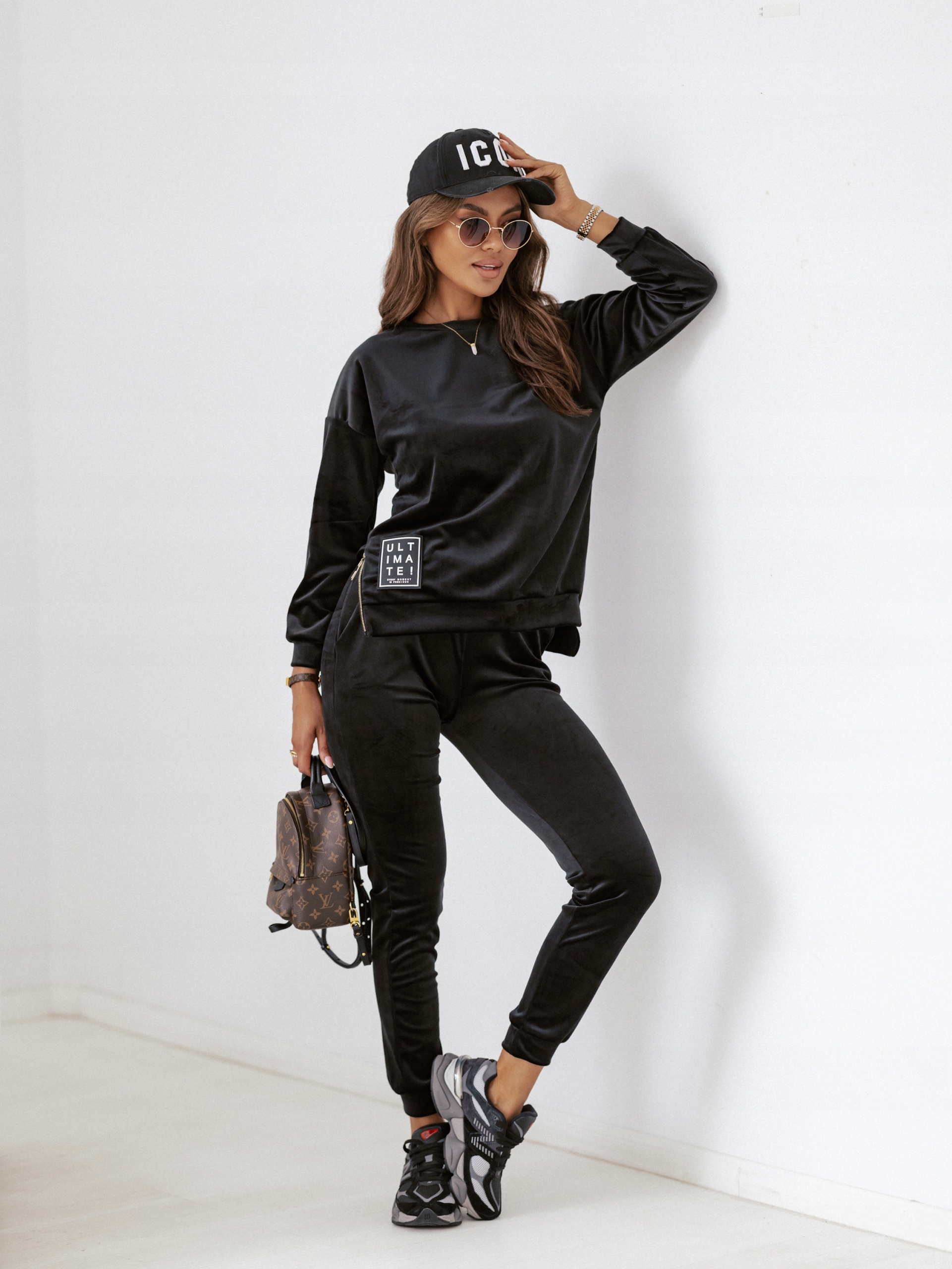 Велюровый спортивный костюм. Доступен в размерах S, M, L и XL в следующих цветах: черный, темно-синий, капучино и коричневый