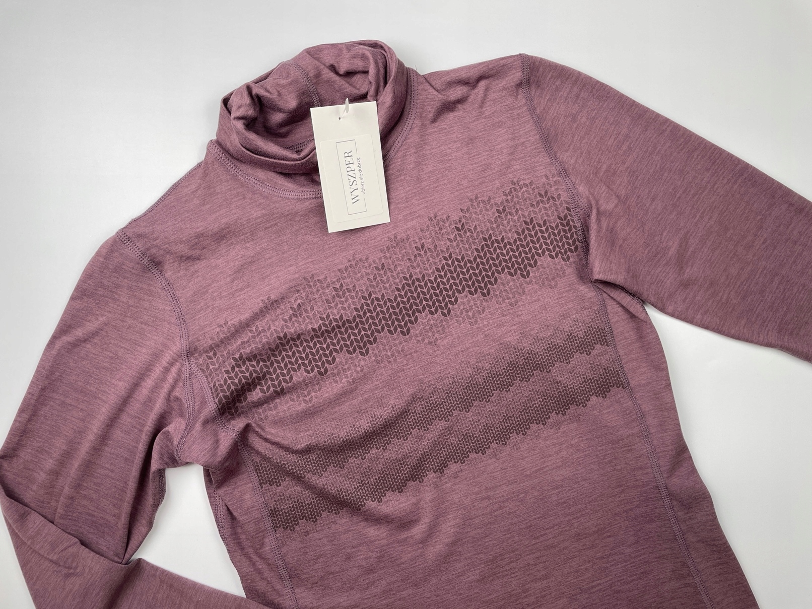 - Кёданская женская спортивная водолазка. Это блузка с длинным рукавом с водолазкой. Он в фиолетовом цвете Меланга с интересным рисунком спереди. Блузка сделана из невероятно мягкого, приятного для сенсорного материала. У него есть прилегающий, прилегающий креб. Кроме того, материал является гибким, а не сдерживает движения, а плоские швы обеспечивают комфорт и комфорт ношения.