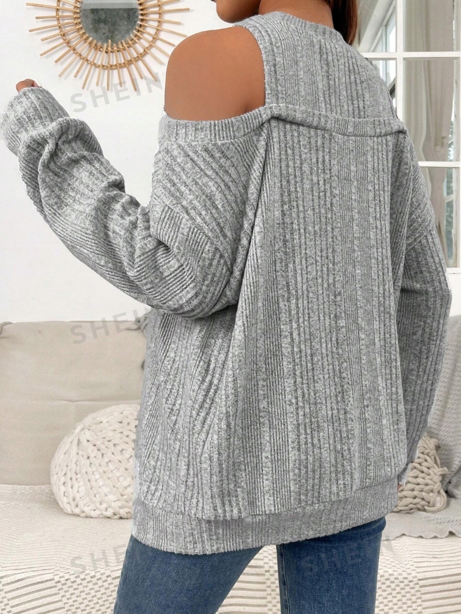 ЖІНОЧИЙ СВЕТР ДЛЯ ВАГІСЛІВ SHEIN СІРИЙ З КРУГЛОЮ ГОРІЄЮ M 419