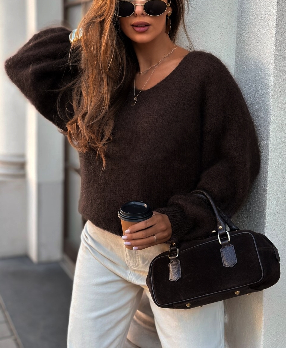 ЖЕНСКИЙ СВИТЕР, ТЕПЛЫЙ, Мягкий на ощупь, шерсть альпаки, V-образный вырез