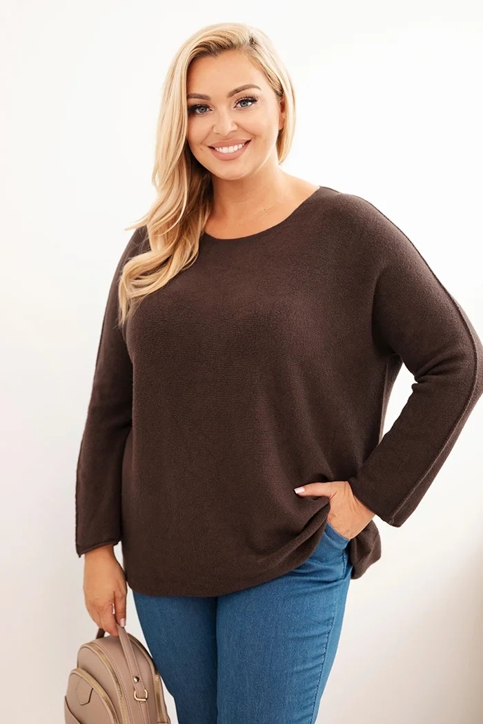Женский свитер больших размеров с вырезом «лодочка», коричневый