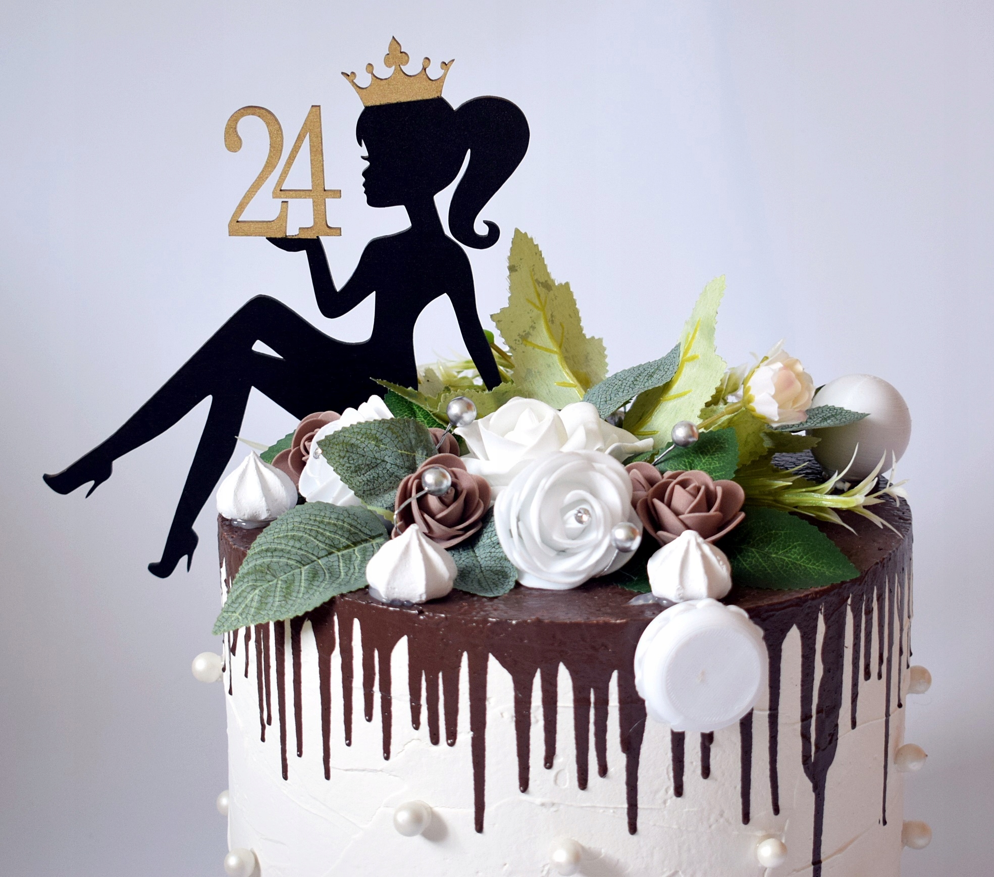 Топпер может быть выполнен полностью в одном цвете или вы можете сочетайте топперы любого цвета с короной и цифрой, например черная женщина, цифра и золотая корона