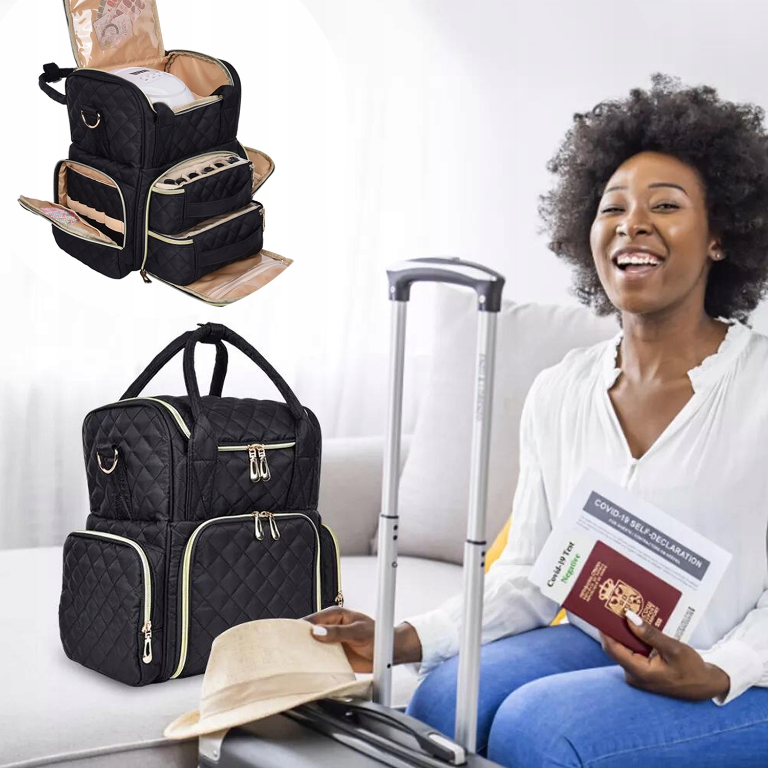 - Легко для переноски: имеет двойные ручки вверху, багажный ремень и регулируемые ремни для рюкзака для комфортного путешествия. Его компактный размер означает, что он не занимает много места, будь то дома или в путешествии.