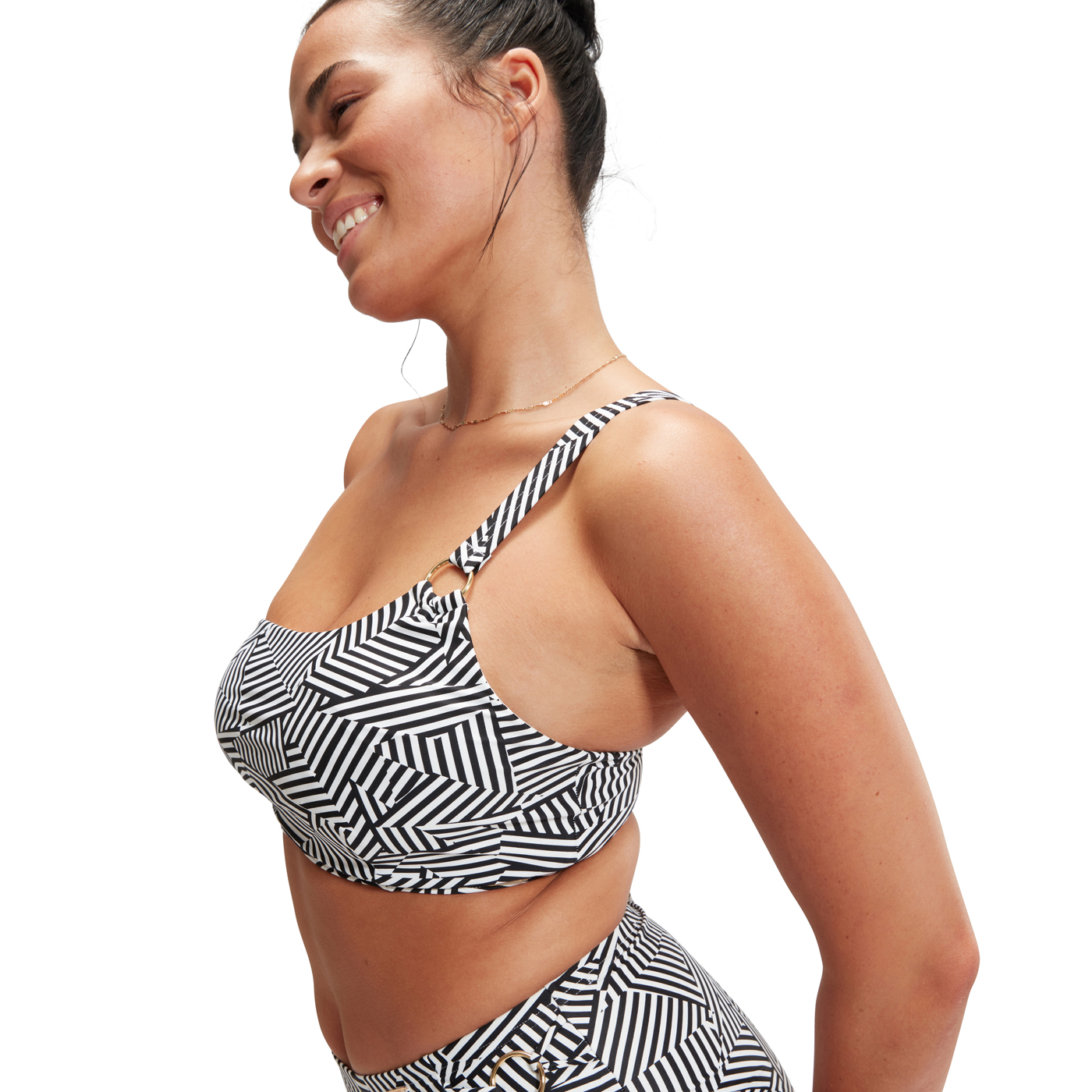 Этот элегантный асимметричный бюстгальтер бикини с монохромным принтом имеет сложный порез на одном плече и потрясающий кружево обратно для индивидуальной посадки. Стильный дизайн отделан золотым кольцом на регулируемых ремнях и содержит съемные бюстгальтеры для бюстгальтера для поддержки и моделирования. Изготовленная из высококачественного, удобного материала моделирования фигуры, которая сглаживает и моделирует тело, идеально подходит для пляжа или бассейна. Предлагая более высокую сопротивление хлора, чем стандартные ткани для купальных костюмов, ткань моделирования подходит как новая в течение долгого времени благодаря Creor® Highclo ™. Нейлоновая пряжа в этой ткани также изготовлена из 100% до -потребительских отходов, таких как отходы с заводов.