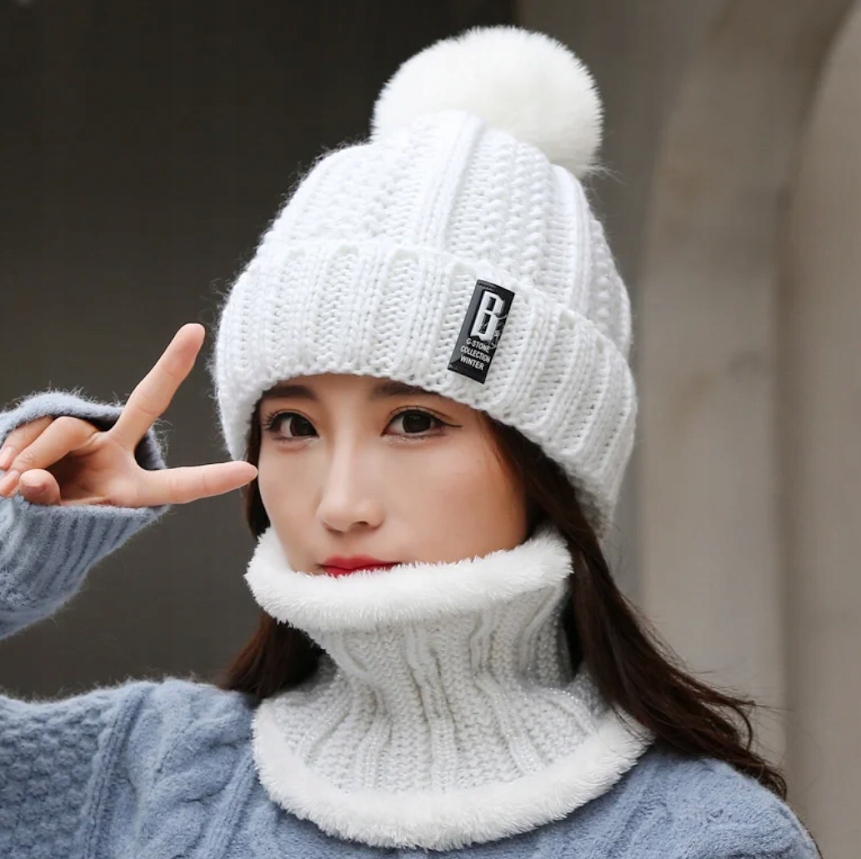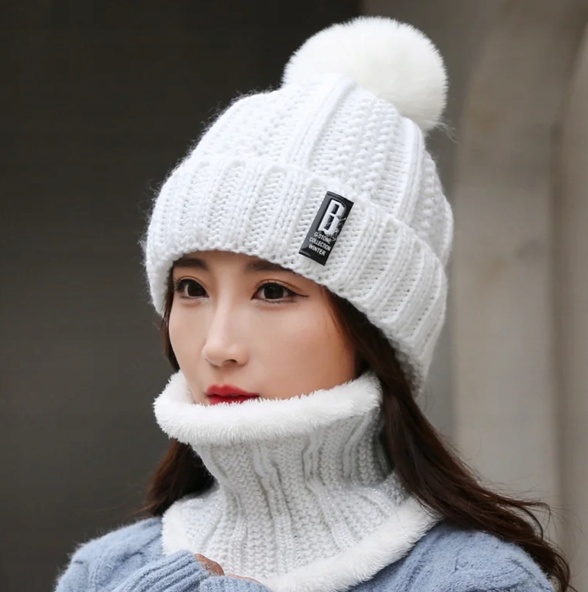 Классический и универсальный зимний комплект, состоящий из шапки с помпоном и шарфа.