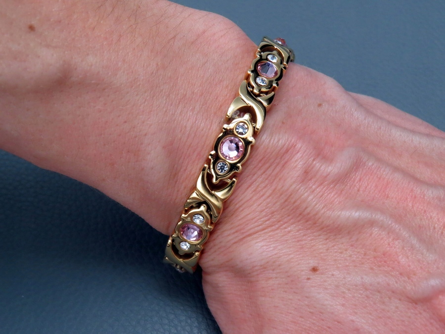 В этом предложении мы представляем исключительно элегантную модель женского магнитного браслета, который изготовлен из магнитного браслета. b>ВЫСОЧАЙШЕЕ КАЧЕСТВО ХИРУРГИЧЕСКОЙ СТАЛИ 316L с покрытием из 18-каратного золота. Эту модель отличают очень элегантные звенья в сочетании с красивым ЦИРКОНИЕМ С ПЛОТНОЙ БРИЛЛИАНТОВОЙ ОГРАНКОЙ. Такая композиция очень эффектно смотрится на руке и производит потрясающее впечатление!!! Это одна из самых интересных и продаваемых моделей за последнее время!