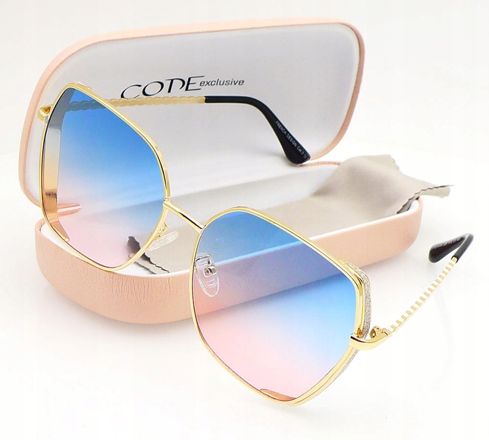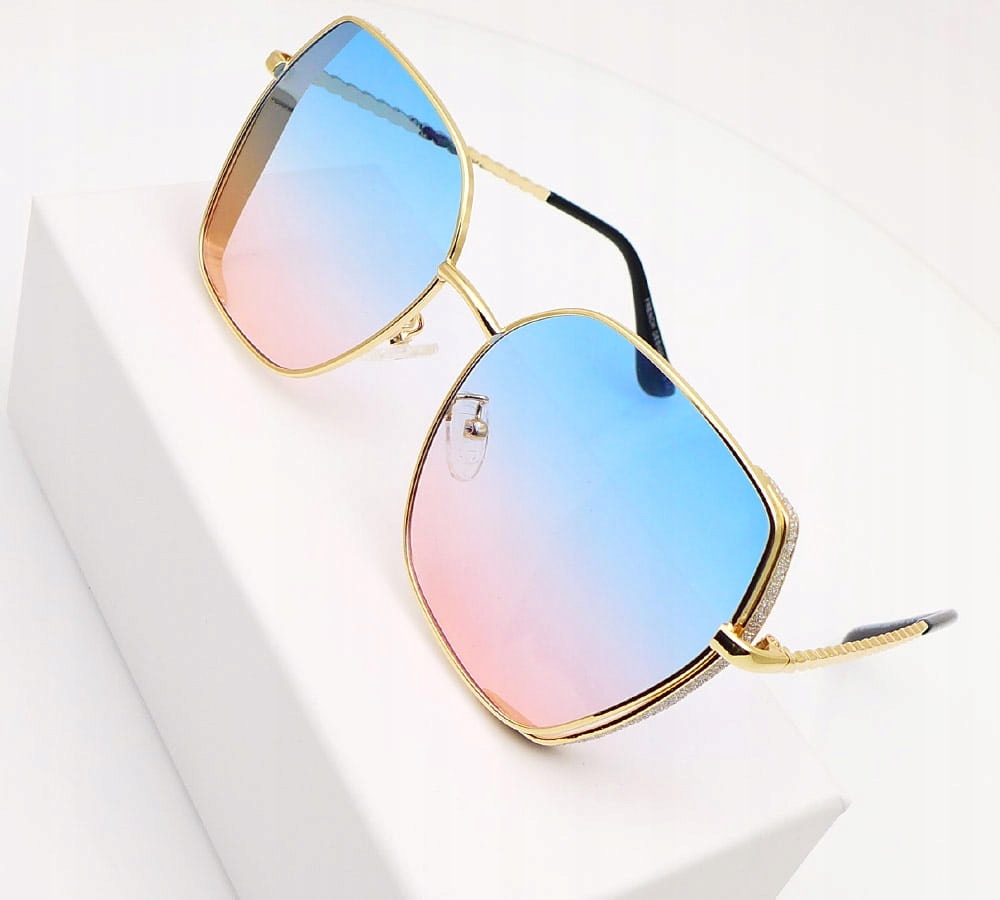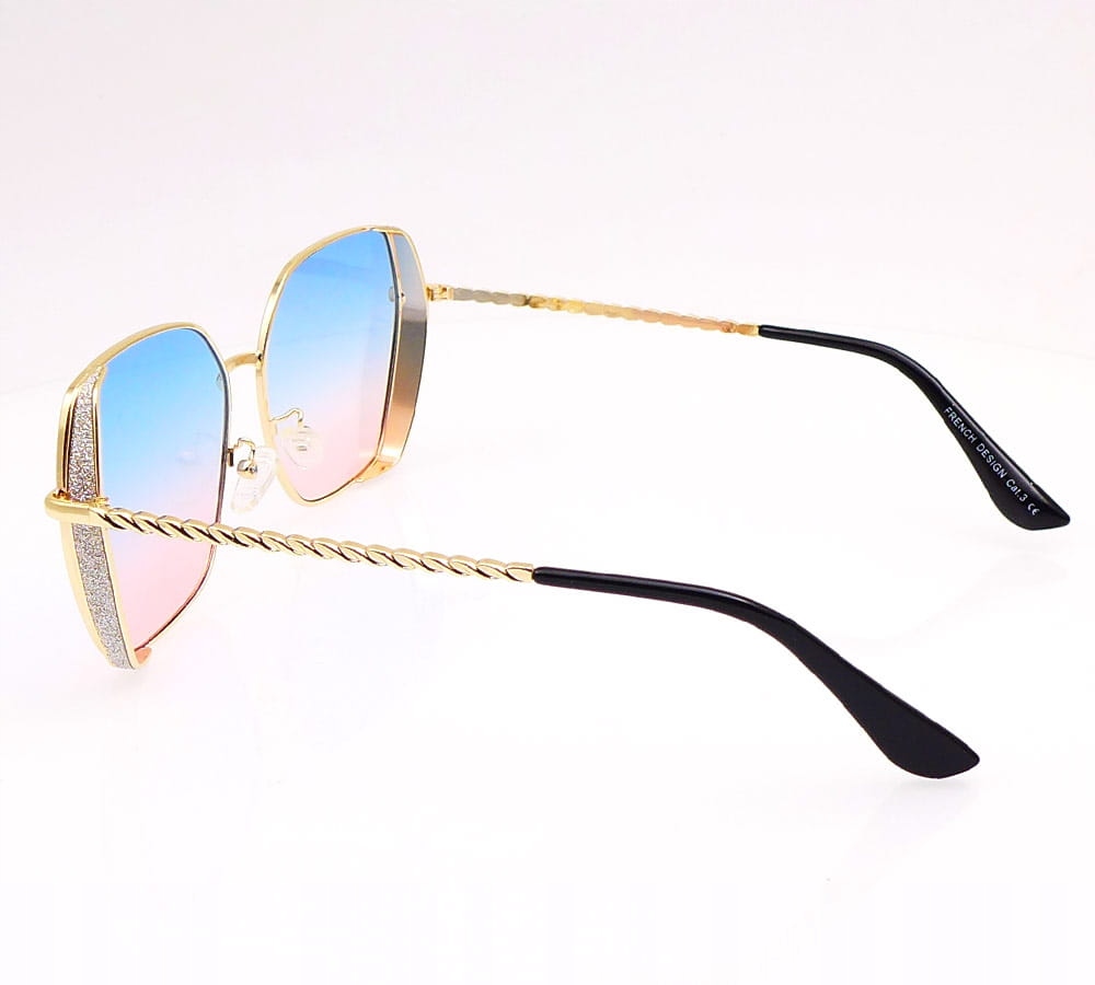 Легкие, современные и стильные солнцезащитные очки с затененным объективом в оттенках синего и розового. Они обеспечивают отличную защиту от ультрафиолетового излучения. Регулируемые силиконовые пальцы и золото, металлические храмы гарантируют идеальную посадку и элегантный вид. Кроме того, рамы, украшенные тонко мерцающей парчой, дают им уникальный характер. Эти очки, идеально подходящие для повседневного использования, сочетают в себе стиль с защитой глаз.