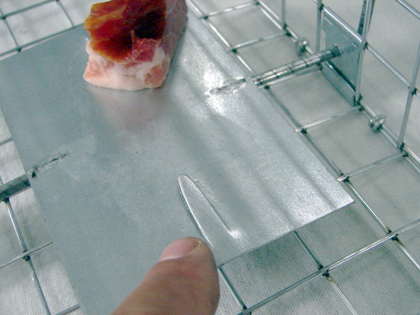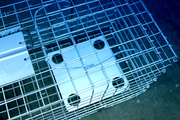 Ловушка имеет посередине смотровую заслонку, которая используется для забрасывания приманки. Очень важно не засовывать в ловушку руку! У большинства ловушек, представленных на рынке, смотровая створка является самым слабым местом - сильное животное может вырвать плохо закрепленную створку.
