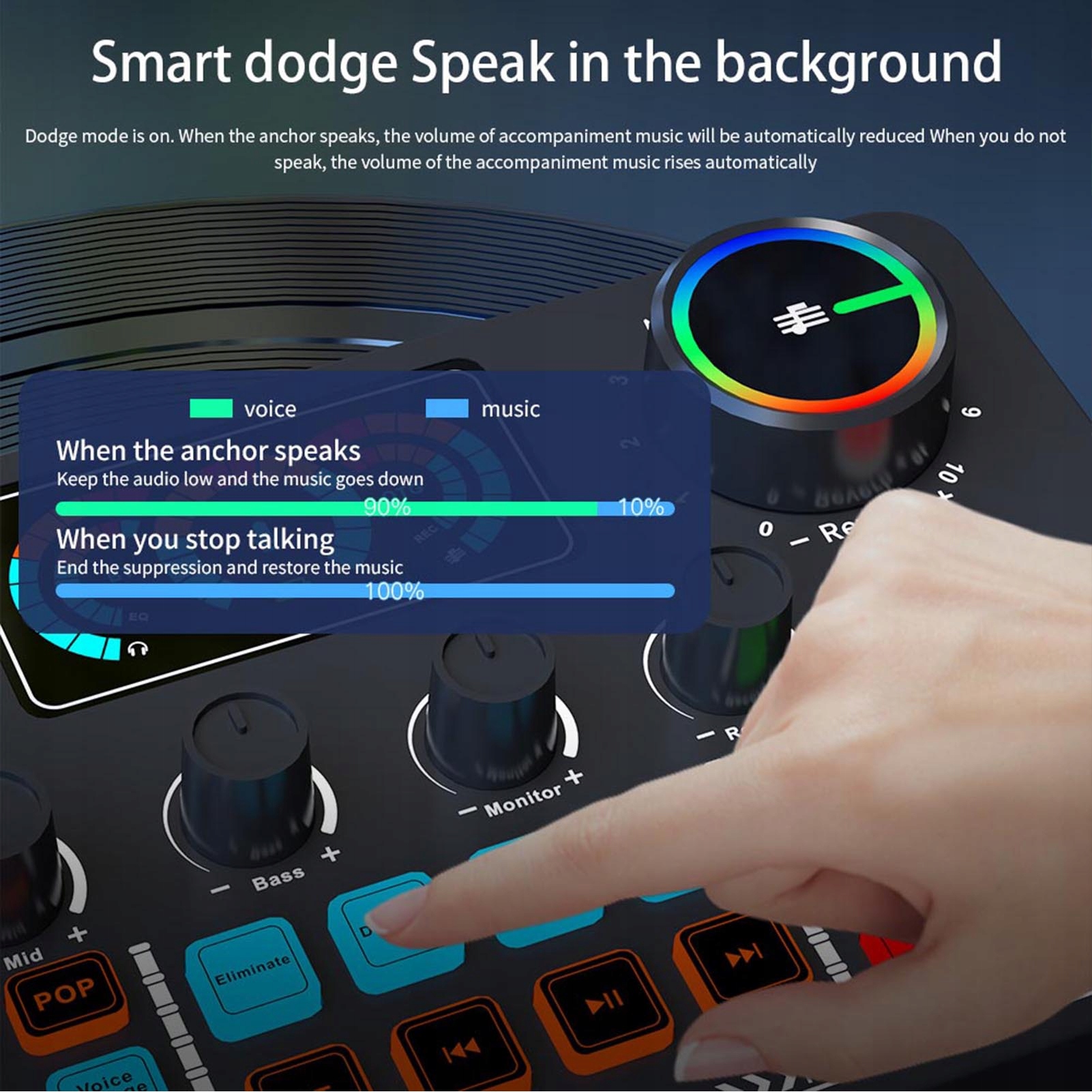 - 【Bt Беспроводной точковой режим Acompanient & Dodge】: звуковая карта поддерживает беспроводное сопровождение BT. В случае режима Dodge объем сопровождения автоматически уменьшится, когда вы говорите и поднимаетесь, когда вы перестанете говорить, обеспечивая беспроблемную трансмиссию в прямом эфире.