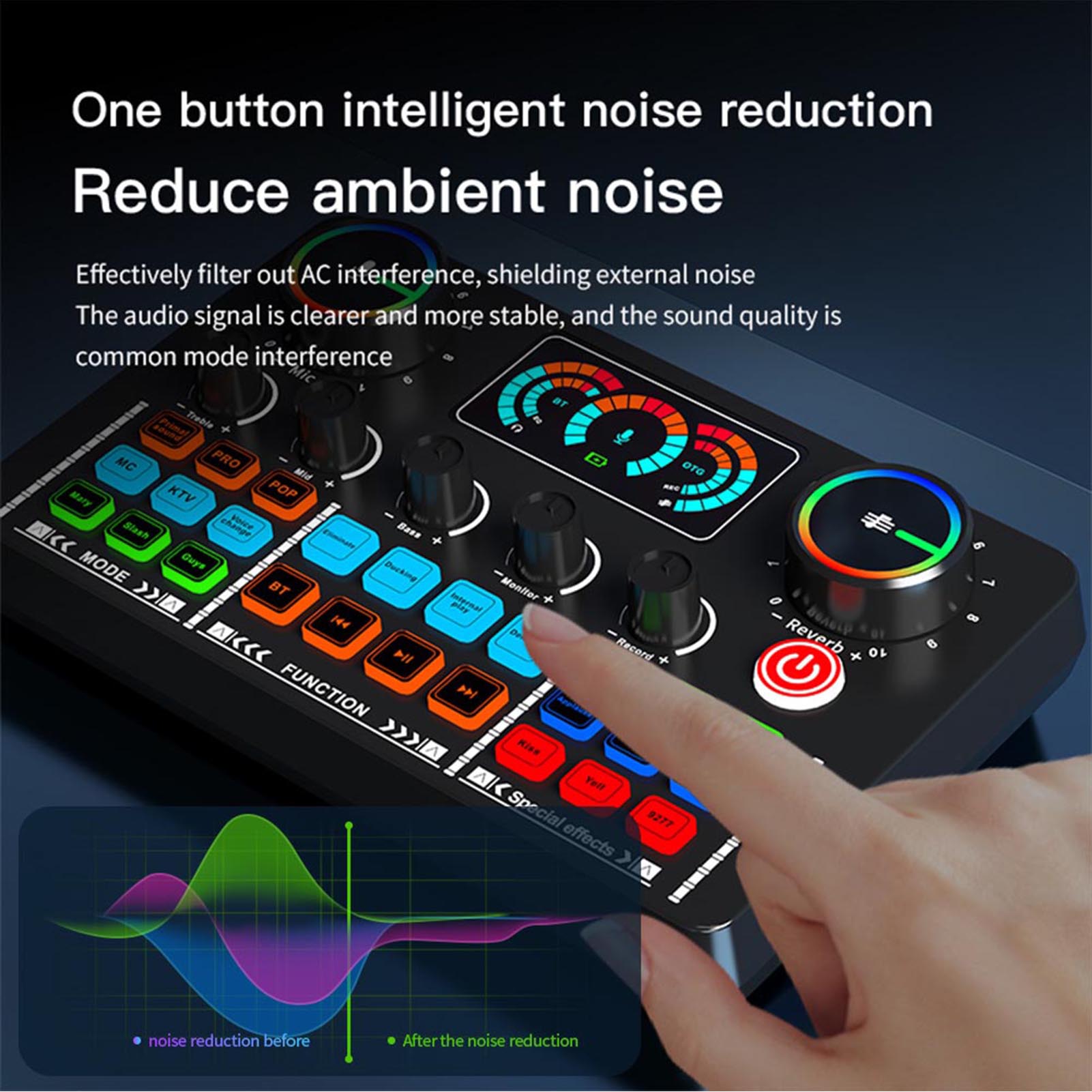 1. 【Многофункциональная звуковая карта】: эта живая звуковая карта представляет собой многофункциональную консоль микширования с элегантным и стильным внешним видом. Он идеально подходит для пения, мобильного караоке, записи и подкастов на компьютерах. После подключения звуковой карты ваш телефон и звуковая карта могут встать одновременно, удовлетворяя потребности многолетней трансмиссии в прямом эфире.