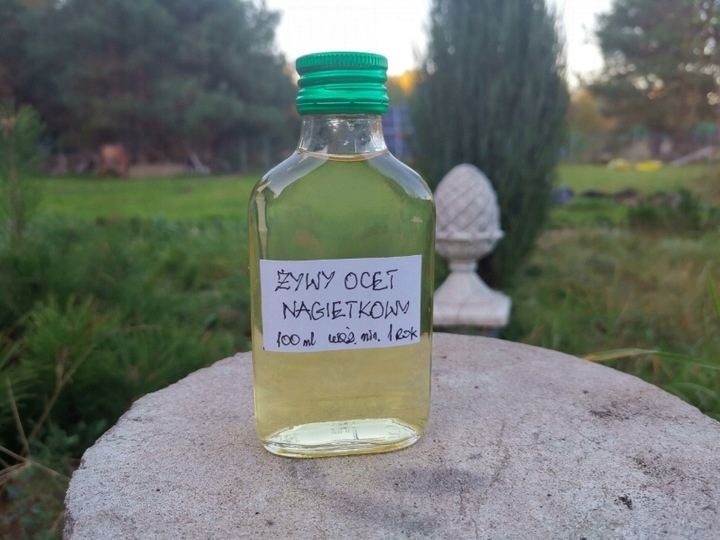 Натуральный, непастеризованный, живой и вкусный уксус, изготовленный из прекрасных цветков бархатцев.