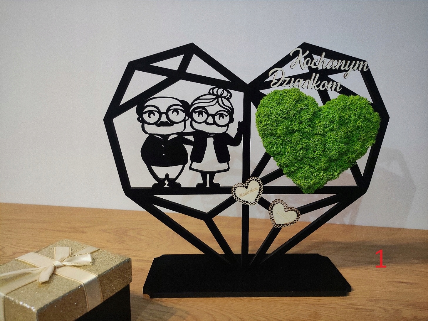 - по желанию : деревянная надпись «Дорогим бабушкам и дедушкам/Дорогой бабушке/Дорогому дедушке/Мы тебя любим/Я тебя люблю/Я тебя люблю/