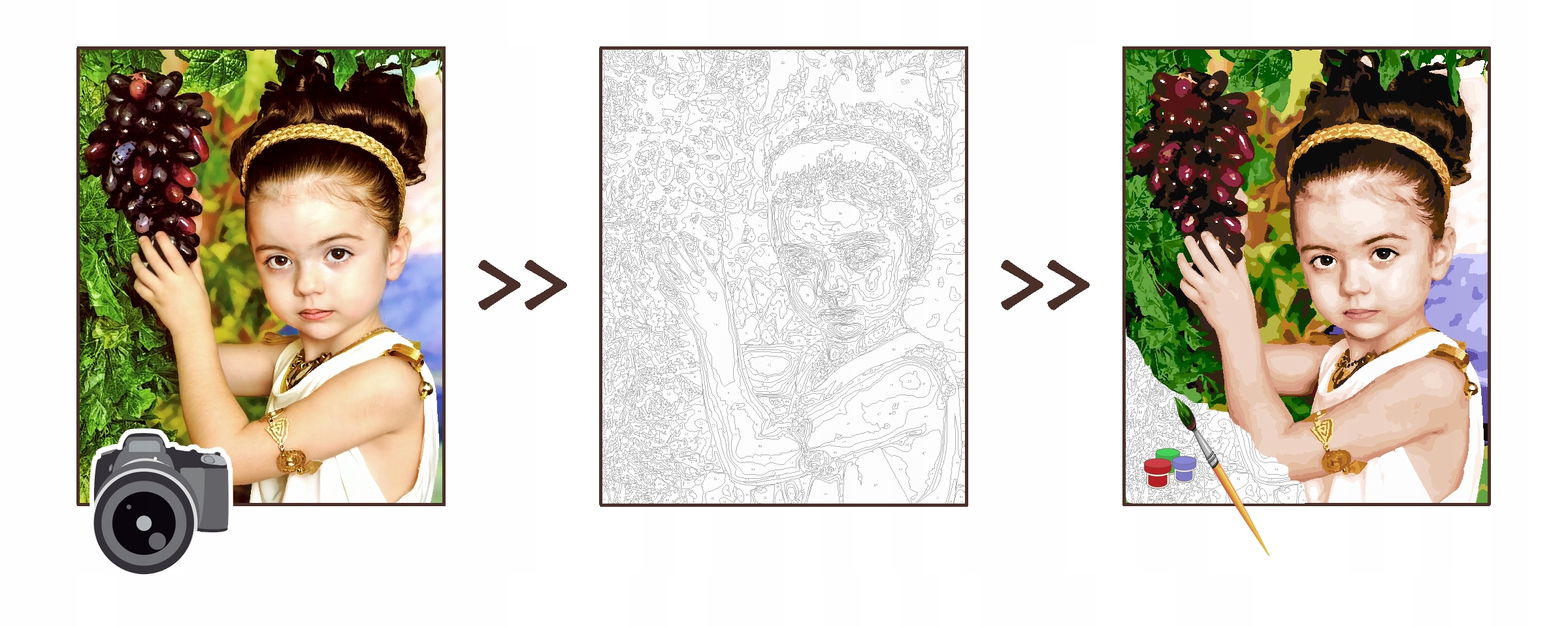 Контуры (фрагмент на фото), напечатанные на холсте, четко делят холст на сегменты. Контуры и номера сегментов печатаются в высоком разрешении, что поможет вам получить истинное удовольствие от рисования.