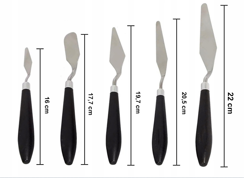 ✔ набор из 5 штук - разнообразие размеров лопат позволяет вам работать с деталями и на больших плоскостях.