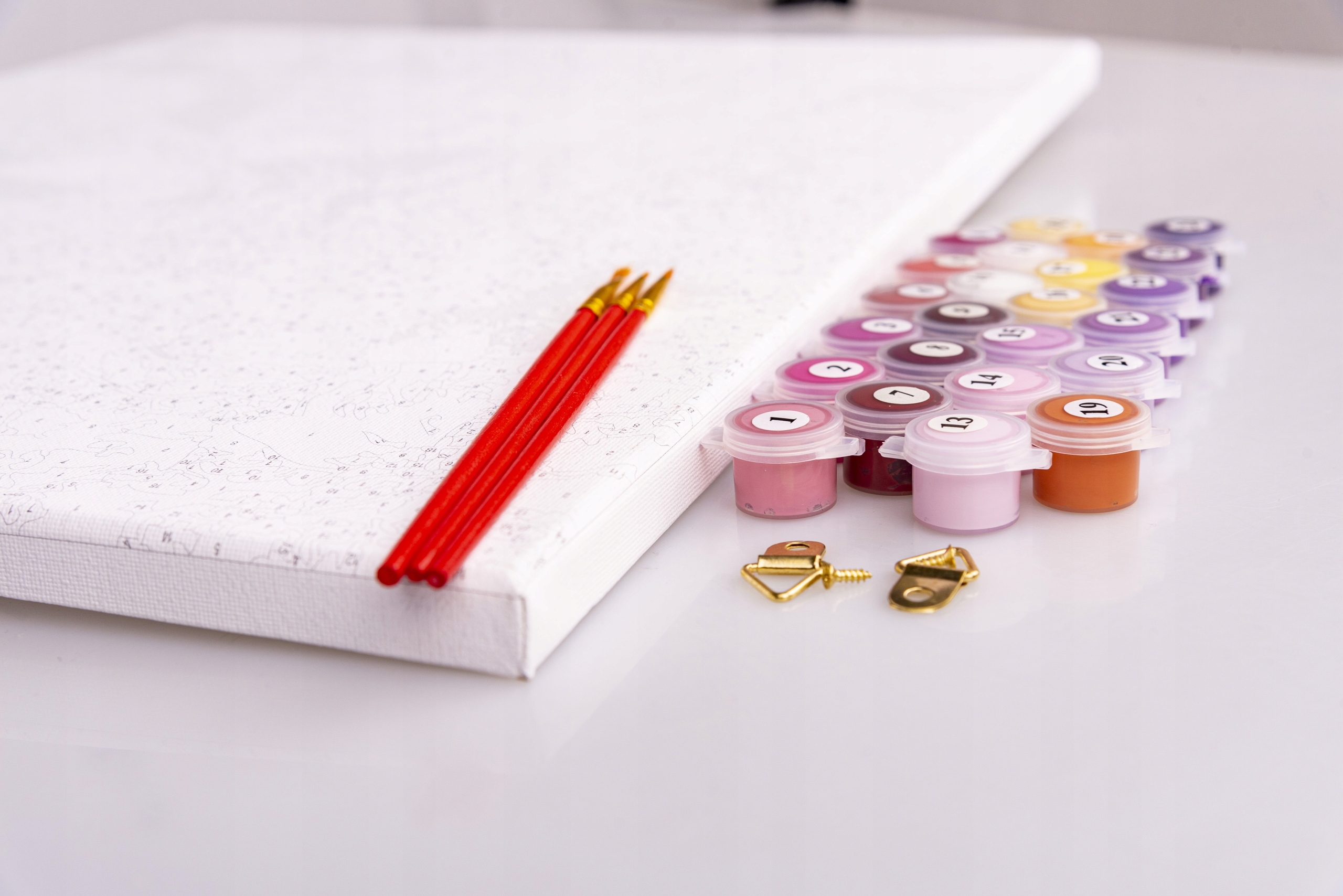 - холст с контуром изображения и цифрами, соответствующими цветам краски