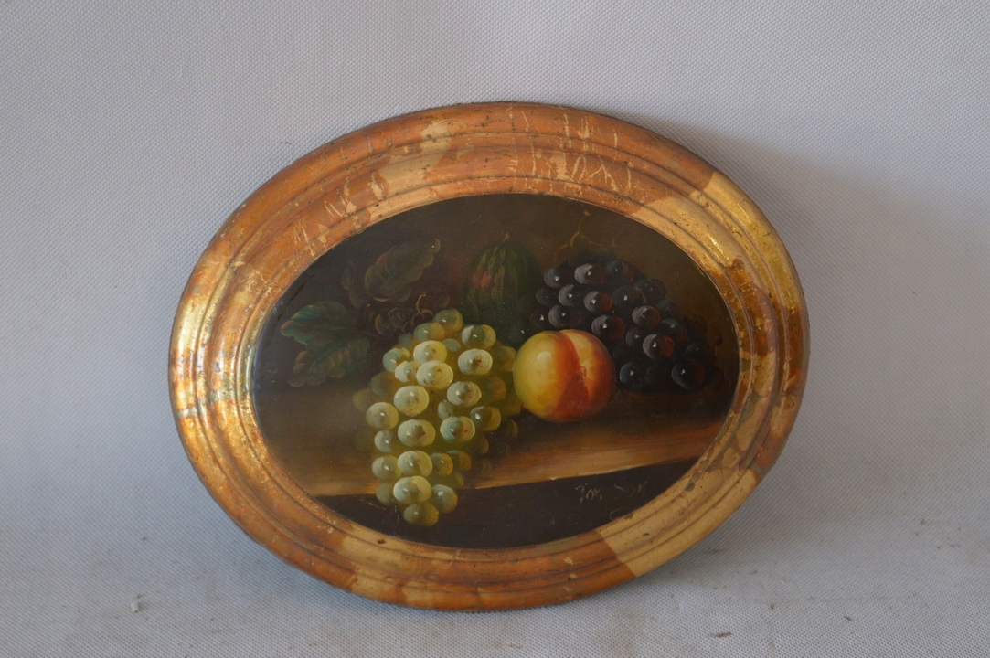 ОВАЛ КАРТИНЫ МАСЛОМ - НАТЮРМОРТ С ГРОЗДЬЮ ВИНОГРАДА