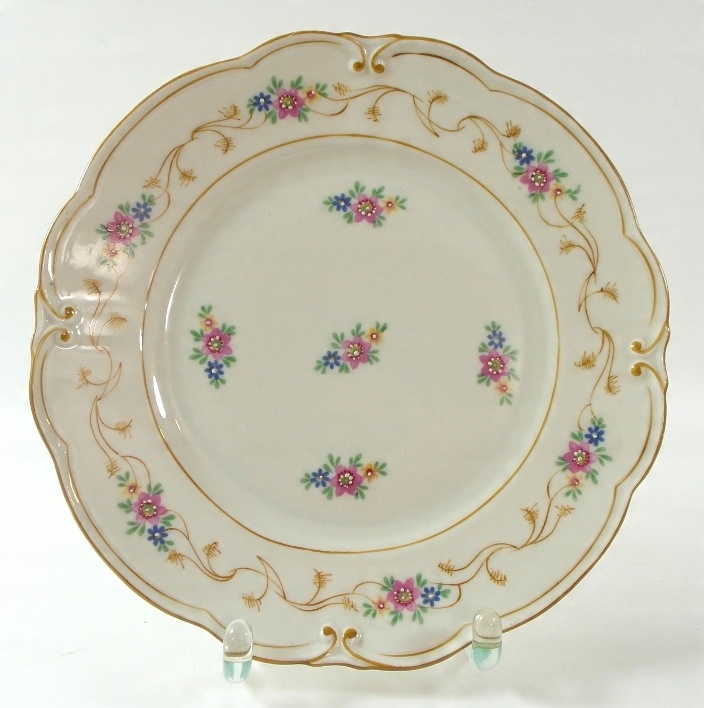 Красивые старинные десертные тарелки - набор из 6 штук, из фарфора цвета экрю, украшенные рельефными цветами, расписанными вручную - выпуклый декор на цветах.