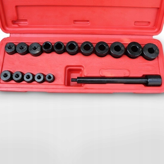 Набор профессиональных инструментов для центрирования дисков сцепления, состоящий из 18 предметов.