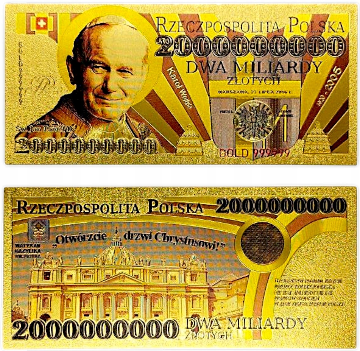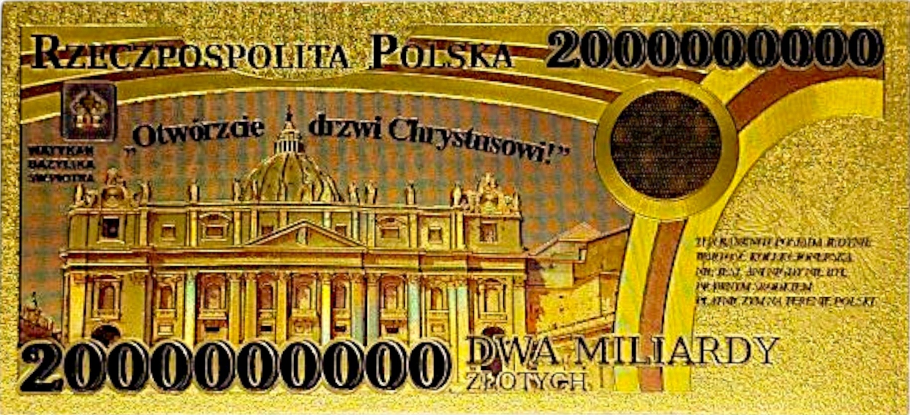 Beautiful Collector's Banknote Два миллиарда Джон Павл II. Декоративно.