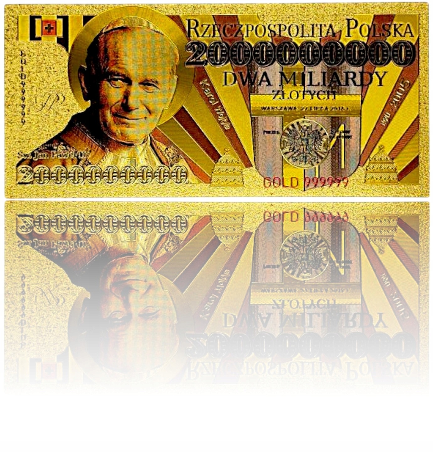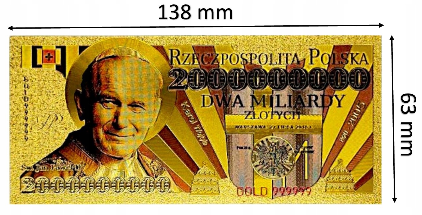 Джон Павел II, или Карол Войтила, является одним из величайших поляков в истории и первым папой из Польши. Его понтификат (1978-2005) был полон революционных событий,-внесли свой вклад в падение коммунизма, вдохновил миллионы людей во всем мире своей верой, любовью и обучением о мире. Он был символом надежды, диалога между народами и духовным возрождением. Банкноты коллекционера - отличный подарок для близких и прекрасное украшение каждой коллекции. Пусть этот уникальный объект напоминает вам о мудрости и духовной силе польского папы!