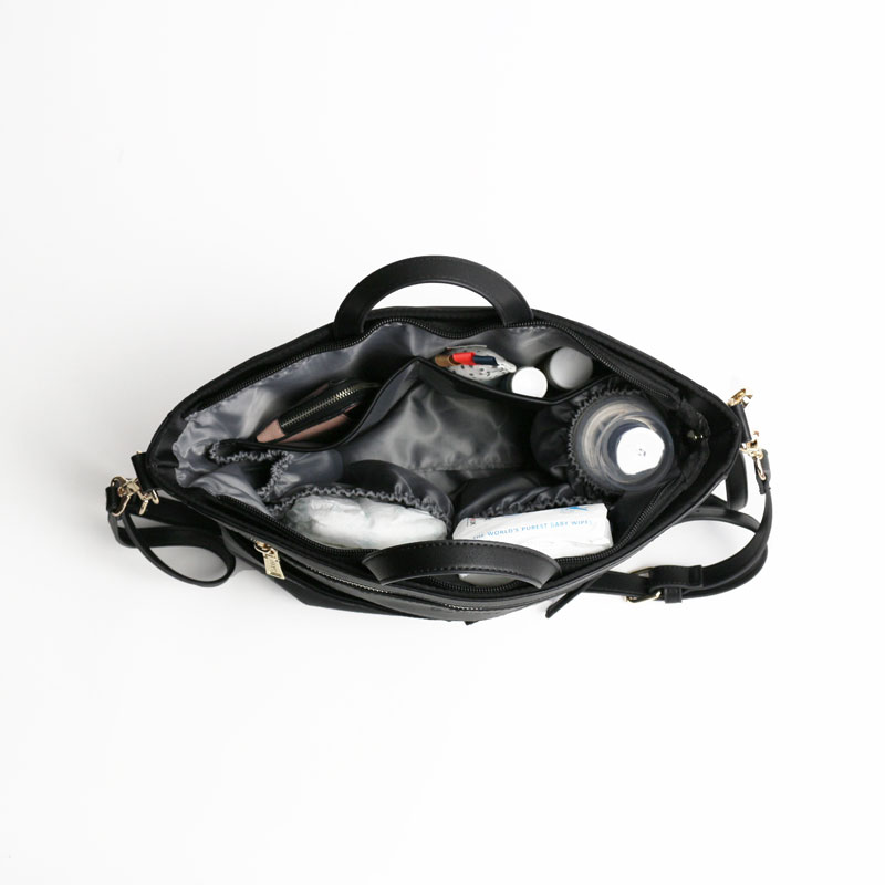 В комплект входят специальные крючки для коляски и ремень для ношения сумки на плече.