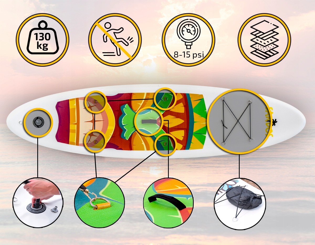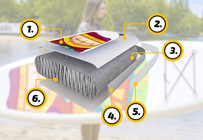 Каждая наша доска изготовлена по технологии двойного армирования прочной DWF - Double Wall Fabric, дополнительно соединенной внутри тысячами волокон Dropstitch, что позволяет самая стабильная конструкция, которую данный тип досок можно найти в настоящее время на рынке.
