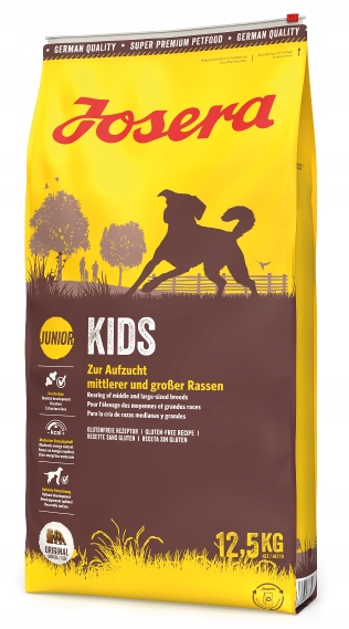 Josera Kids — корм для всех молодых собак средних и крупных пород в период их роста. Рецептура продуктов пониженной энергетической ценности с соответствующим образом подобранным содержанием белков и жиров влияет на развитие костей и суставов.