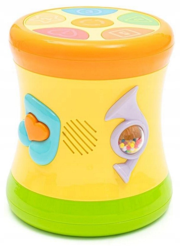 Музыкальный барабан Baby Mix — идеальная развивающая игрушка для детей от 10 месяцев. Этот красочный барабан сочетает в себе удовольствие и обучение, развивая музыкальные и сенсорные навыки вашего ребенка. Благодаря различным функциям и световым эффектам барабан подарит долгие часы веселья. Функции барабана: 8 мелодий и 12 веселых песенок способствуют развитию слуха и музыкальных навыков ребенка. Свет, меняющийся во время игры, стимулирует зрение и привлекает внимание; звуки барабана способствуют активному открытию звуков и развитию координации рук посредством игры: Развитие музыкальных способностей, зрения и слуха благодаря световым и звуковым эффектам, мелкой моторики и координации - развлечение, которое учит посредством звука и света. Детский музыкальный барабан Микс - прекрасный подарок каждому маленькому художнику, который с радостью откроет для себя мир звуков и света!