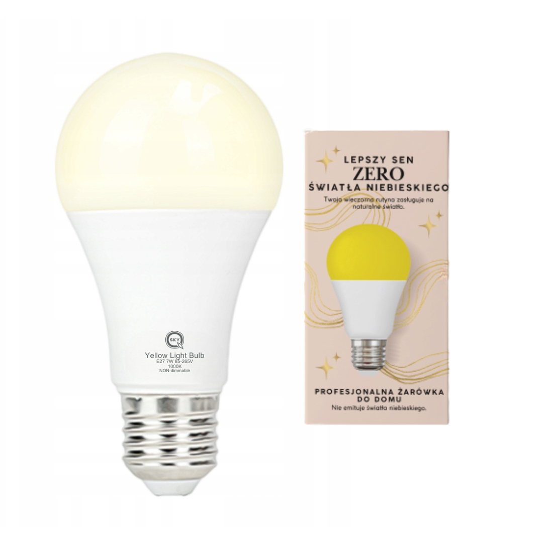 ЖЕЛТАЯ СВЕТОДИОДНАЯ ЛАМПА E27 ДЛЯ НОЧИ 7ВТ БЕЗ СИНЕГО СВЕТА ДЛЯ ЛУЧШЕГО СНА 450LM