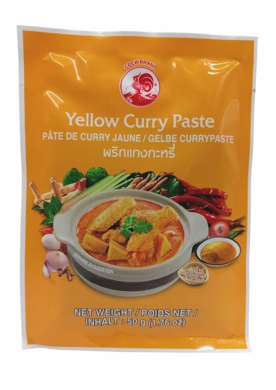 Желтая паста карри — самая мягкая из всех паст. Рекомендуется людям, которые не любят очень острую пищу. Изготовлен из перца чили, лемонграсса и куркумы, что придает ему желтый цвет. Это основа желтого карри.