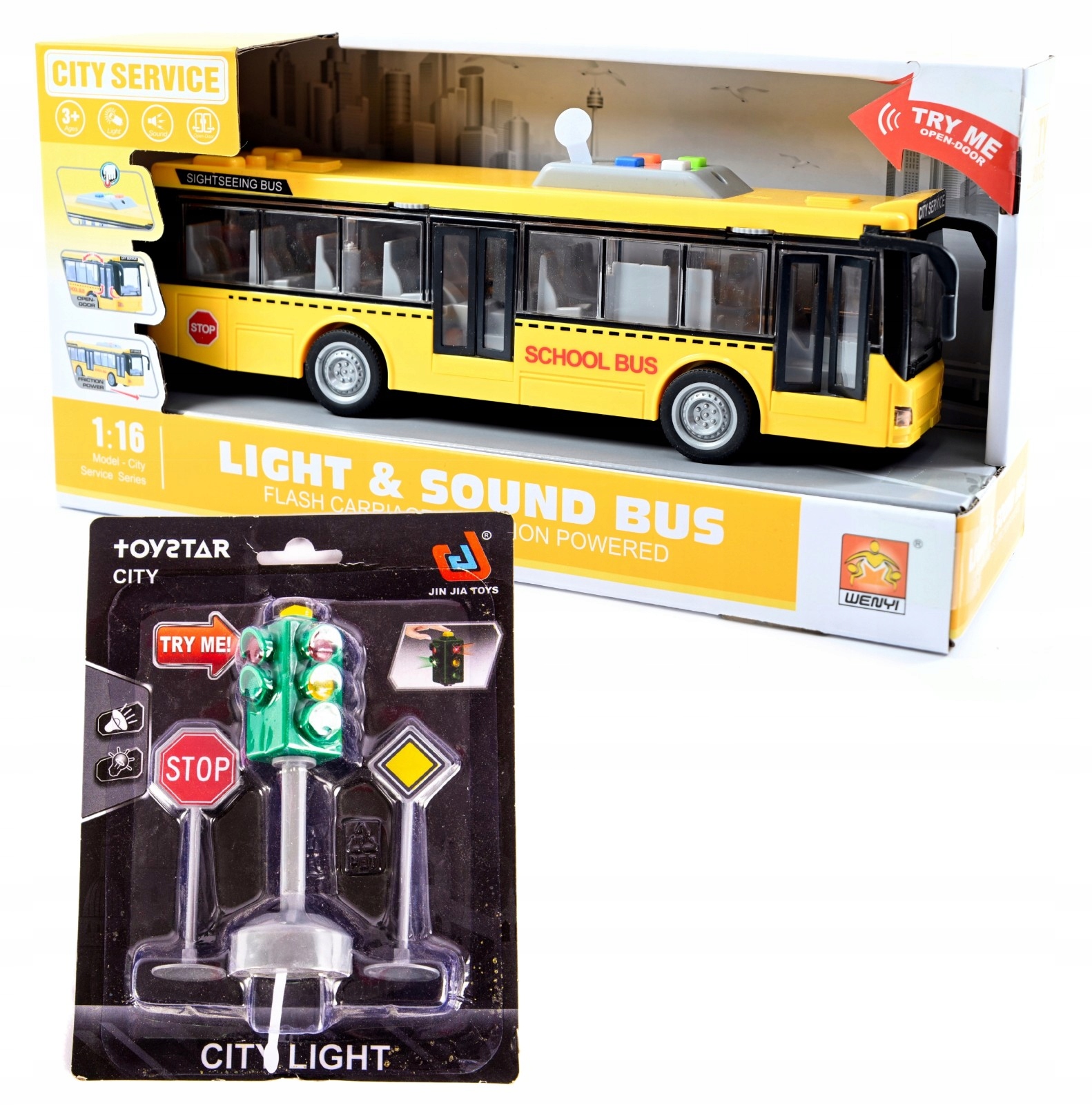 ЖЕЛТЫЙ ШКОЛЬНЫЙ АВТОБУС + ДОРОЖНЫЕ ЗНАКИ СВЕТОФОР