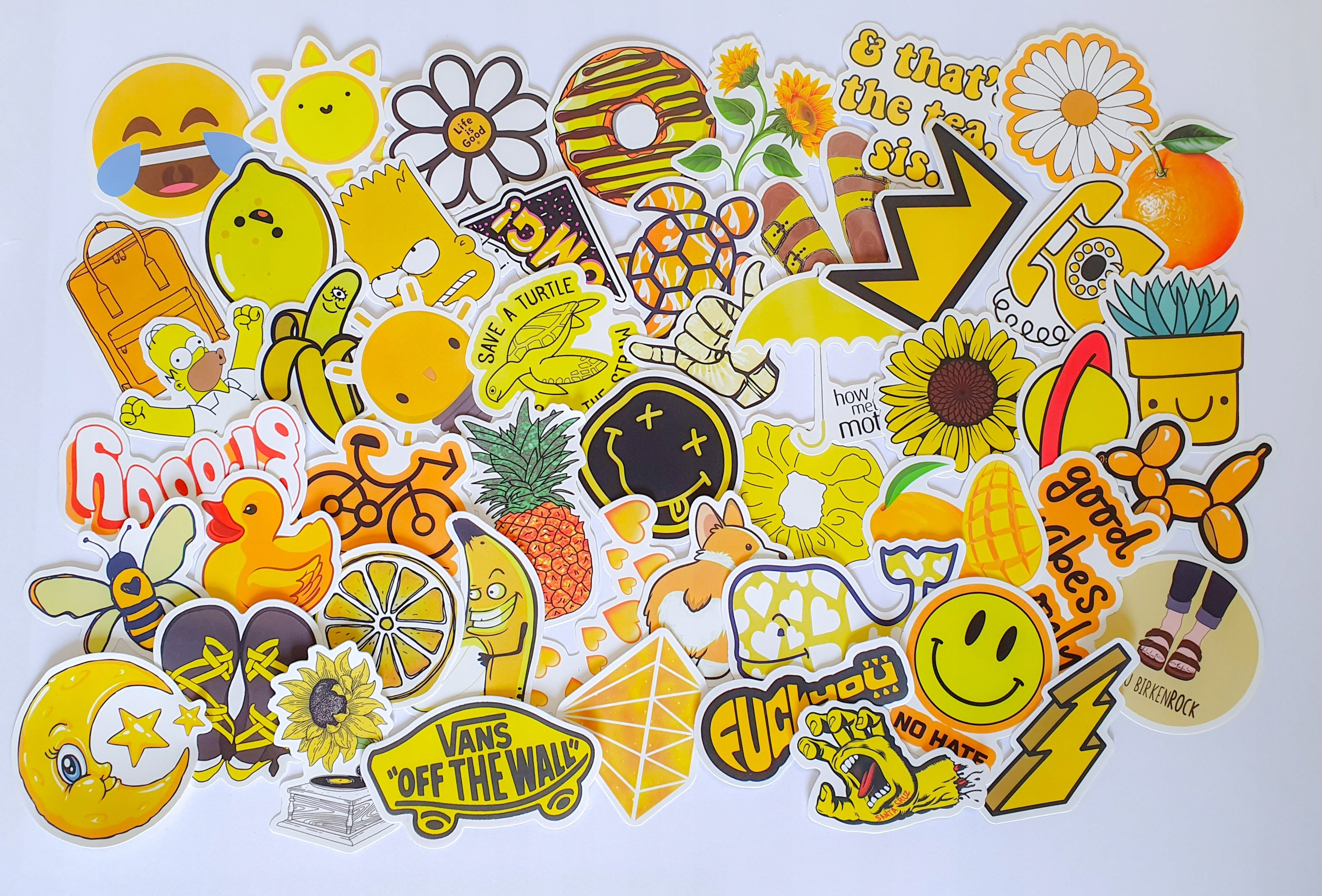 ЖЕЛТЫЕ ВОДОНЕПРОНИЦАЕМЫЕ НАКЛЕЙКИ МИКС 50 шт. НАКЛЕЙКИ