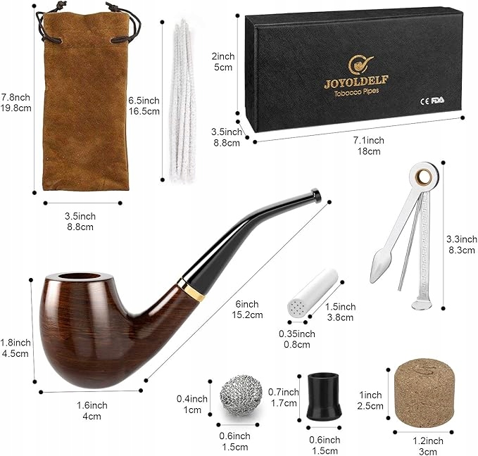 ✅ В комплект курительной трубки Joyoldelf входят все необходимые аксессуары, такие как пробковый пестик, инструмент для трубок 3-в-1, очиститель трубок, фильтр, насадки для трубок, металлический шарик и небольшой мешочек - все, что вам нужно, чтобы получить удовольствие от курения табака на самом высоком уровне.