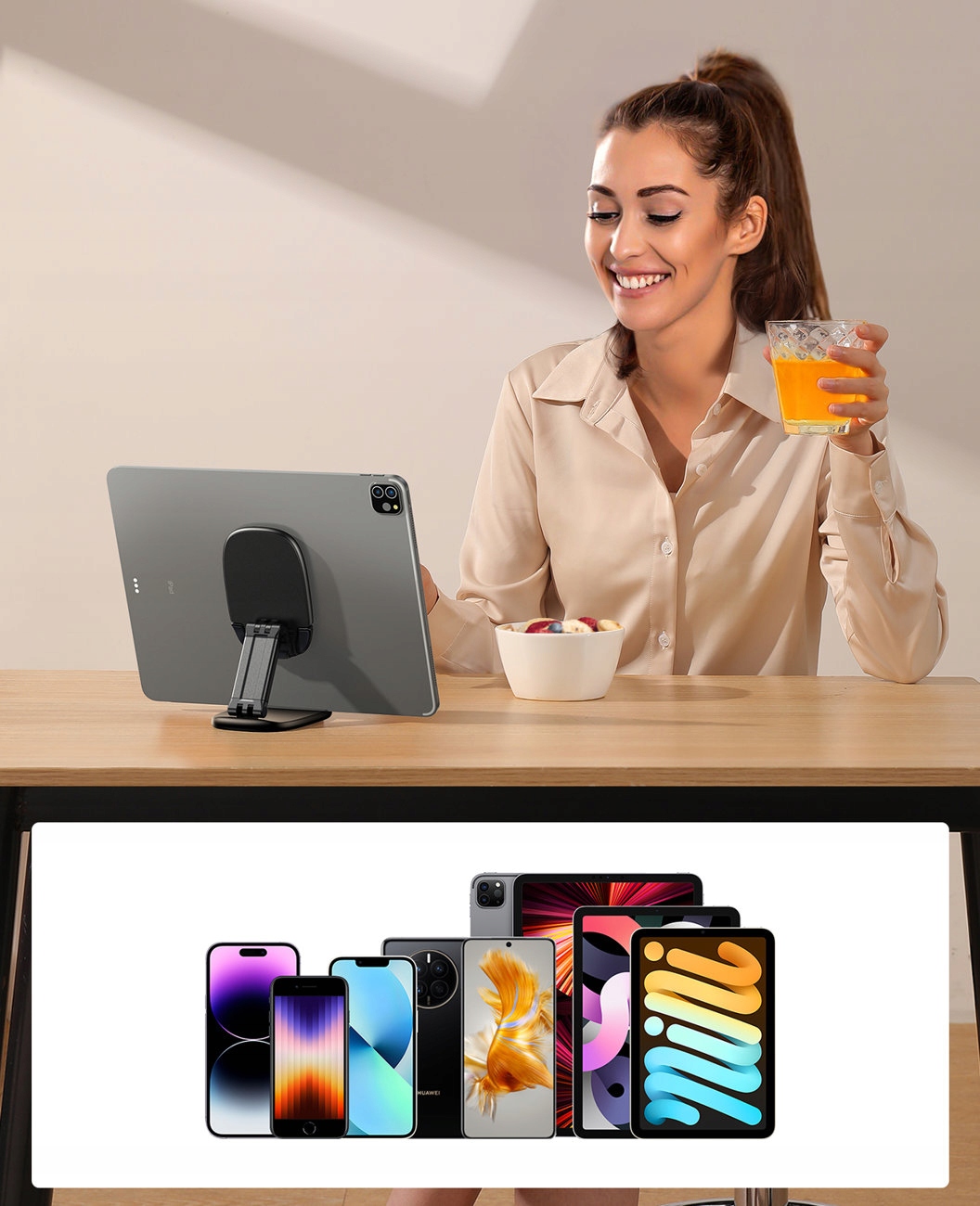 С подставкой Joyroom JR-ZS371 вам будет удобно пользоваться телефоном или планшетом, а также вы снимете нагрузку со спины и глаз. Корпус подставки и ее высоту можно свободно регулировать. Вы можете установить угол экрана так, как вам удобно. Вы готовите на кухне и хотите просмотреть онлайн-рецепт? Или, может быть, вы сидите за столом и записываете видео для социальных сетей? Независимо от того, как вы используете подставку, Joyroom JR-ZS371 полностью адаптируется под вас.
